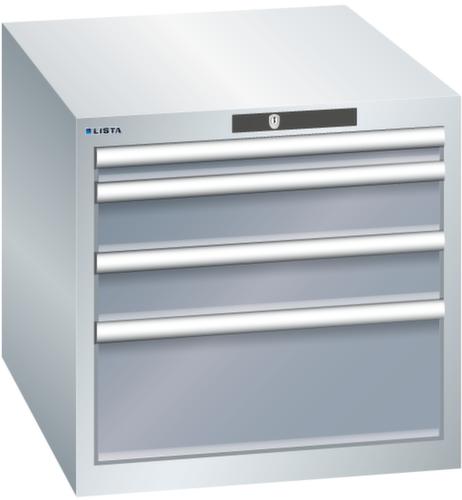 "longDescription": "LISTA Schubladenschrank, Lista Einheit: 27x36E, BxTxH: 564x725x533mm, Schubladen-Nutzfläche BxT: 459x612mm, Anzahl Schubladen: 4, Anzahl Fronthöhen (Tragkraft): 1x 50mm (75kg), 2x100mm (75kg), 1x200mm (75kg), Schliessart: Key Lock, Standard-Schliessung mit Wechselyzlinder inkl. 2 Schlüsseln mit Schlüsselnummer, Farbe Gehäuse: Lichtgrau RAL 7035, Farbe Schubladen: Grau metallic NCS S 6502-B. Höchste Stabilität: Gehäuse bis 4t belastbar, Schubladen mit 75 oder 200 kg Tragkraft. Maximale Ausnutzung dank Vollauszug und optimaler Mantelhöhe der Schubladen. Exzellente Schutzeigenschaften gegen Schmutz, Flüssigkeiten und mechanische Beanspruchung durch geschlossenes Gehäuse mit schlag- und abriebfester Oberfläche. Überzeugende Sicherheit: Aushebesicherung gegen Herausfallen der Schubladen und Einzelschubladensperre als Kippschutz. Korrosionsschutz durch Elektrophorese-Tauchlackierung und umweltfreundlichen Pulverlack. Optimale Ordnung und Organisation dank speziellem LISTA-Einteilungsmaterial für jeden Zweck und gelochter, geschlitzter Schubladen. Professionelle Beschriftung mit Beschriftungssoftware LISTA Script und hochklappbarer Griffleiste zum Einlegen der Etiketten. Perfekte Laufruhe durch traversenlos geführten Differenzialauszug. Flexible Anpassungsmöglichkeiten durch vorperforierte Löcher für Tischplatten (Punchout), Rollen, Schubladen, Schliesssysteme für einfaches Um- und Nachrüsten<br>",