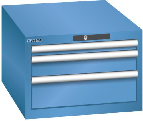 "longDescription": "LISTA Schubladenschrank, Lista Einheit: 27x36E, BxTxH: 564x725x383mm, Schubladen-Nutzfläche BxT: 459x612mm, Anzahl Schubladen: 3, Anzahl Fronthöhen (Tragkraft): 1x 50mm (75kg), 1x100mm (75kg), 1x150mm (75kg), Schliessart: Code Lock, elektronisches Zahlenschloss mit 10 Ziffern für 4- bis 6-stellige Codes, bis 100 Codes, Farbe Gehäuse: Capriblau RAL 5019, Farbe Schubladen: Capriblau RAL 5019. Höchste Stabilität: Gehäuse bis 4t belastbar, Schubladen mit 75 oder 200 kg Tragkraft. Maximale Ausnutzung dank Vollauszug und optimaler Mantelhöhe der Schubladen. Exzellente Schutzeigenschaften gegen Schmutz, Flüssigkeiten und mechanische Beanspruchung durch geschlossenes Gehäuse mit schlag- und abriebfester Oberfläche. Überzeugende Sicherheit: Aushebesicherung gegen Herausfallen der Schubladen und Einzelschubladensperre als Kippschutz. Korrosionsschutz durch Elektrophorese-Tauchlackierung und umweltfreundlichen Pulverlack. Optimale Ordnung und Organisation dank speziellem LISTA-Einteilungsmaterial für jeden Zweck und gelochter, geschlitzter Schubladen. Professionelle Beschriftung mit Beschriftungssoftware LISTA Script und hochklappbarer Griffleiste zum Einlegen der Etiketten. Perfekte Laufruhe durch traversenlos geführten Differenzialauszug. Flexible Anpassungsmöglichkeiten durch vorperforierte Löcher für Tischplatten (Punchout), Rollen, Schubladen, Schliesssysteme für einfaches Um- und Nachrüsten<br>",