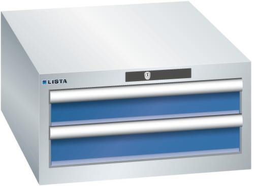 "longDescription": "LISTA Schubladenschrank, Lista Einheit: 27x36E, BxTxH: 564x725x283mm, Schubladen-Nutzfläche BxT: 459x612mm, Anzahl Schubladen: 2, Anzahl Fronthöhen (Tragkraft): 2x100mm (75kg), Schliessart: Code Lock, elektronisches Zahlenschloss mit 10 Ziffern für 4- bis 6-stellige Codes, bis 100 Codes, Farbe Gehäuse: Lichtgrau RAL 7035, Farbe Schubladen: Signalblau RAL 5005. Höchste Stabilität: Gehäuse bis 4t belastbar, Schubladen mit 75 oder 200 kg Tragkraft. Maximale Ausnutzung dank Vollauszug und optimaler Mantelhöhe der Schubladen. Exzellente Schutzeigenschaften gegen Schmutz, Flüssigkeiten und mechanische Beanspruchung durch geschlossenes Gehäuse mit schlag- und abriebfester Oberfläche. Überzeugende Sicherheit: Aushebesicherung gegen Herausfallen der Schubladen und Einzelschubladensperre als Kippschutz. Korrosionsschutz durch Elektrophorese-Tauchlackierung und umweltfreundlichen Pulverlack. Optimale Ordnung und Organisation dank speziellem LISTA-Einteilungsmaterial für jeden Zweck und gelochter, geschlitzter Schubladen. Professionelle Beschriftung mit Beschriftungssoftware LISTA Script und hochklappbarer Griffleiste zum Einlegen der Etiketten. Perfekte Laufruhe durch traversenlos geführten Differenzialauszug. Flexible Anpassungsmöglichkeiten durch vorperforierte Löcher für Tischplatten (Punchout), Rollen, Schubladen, Schliesssysteme für einfaches Um- und Nachrüsten<br>",
