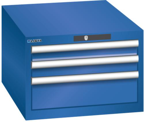 "longDescription": "LISTA Schubladenschrank, Lista Einheit: 27x36E, BxTxH: 564x725x383mm, Schubladen-Nutzfläche BxT: 459x612mm, Anzahl Schubladen: 3, Anzahl Fronthöhen (Tragkraft): 2x75mm (75kg), 1x 150mm (75kg), Schliessart: Code Lock, elektronisches Zahlenschloss mit 10 Ziffern für 4- bis 6-stellige Codes, bis 100 Codes, Farbe Gehäuse: Signalblau RAL 5005, Farbe Schubladen: Signalblau RAL 5005. Höchste Stabilität: Gehäuse bis 4t belastbar, Schubladen mit 75 oder 200 kg Tragkraft. Maximale Ausnutzung dank Vollauszug und optimaler Mantelhöhe der Schubladen. Exzellente Schutzeigenschaften gegen Schmutz, Flüssigkeiten und mechanische Beanspruchung durch geschlossenes Gehäuse mit schlag- und abriebfester Oberfläche. Überzeugende Sicherheit: Aushebesicherung gegen Herausfallen der Schubladen und Einzelschubladensperre als Kippschutz. Korrosionsschutz durch Elektrophorese-Tauchlackierung und umweltfreundlichen Pulverlack. Optimale Ordnung und Organisation dank speziellem LISTA-Einteilungsmaterial für jeden Zweck und gelochter, geschlitzter Schubladen. Professionelle Beschriftung mit Beschriftungssoftware LISTA Script und hochklappbarer Griffleiste zum Einlegen der Etiketten. Perfekte Laufruhe durch traversenlos geführten Differenzialauszug. Flexible Anpassungsmöglichkeiten durch vorperforierte Löcher für Tischplatten (Punchout), Rollen, Schubladen, Schliesssysteme für einfaches Um- und Nachrüsten<br>",