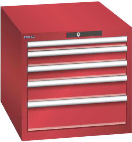 "longDescription": "LISTA Schubladenschrank, Lista Einheit: 27x36E, BxTxH: 564x725x533mm, Schubladen-Nutzfläche BxT: 459x612mm, Anzahl Schubladen: 5, Anzahl Fronthöhen (Tragkraft): 1x50mm (75kg), 2x75mm (75kg), 1x100mm (75kg), 1x150mm (75kg), Schliessart: Key Lock, Standard-Schliessung mit Wechselyzlinder inkl. 2 Schlüsseln mit Schlüsselnummer, Farbe Gehäuse: Rubinrot RAL 3003, Farbe Schubladen: Rubinrot RAL 3003. Höchste Stabilität: Gehäuse bis 4t belastbar, Schubladen mit 75 oder 200 kg Tragkraft. Maximale Ausnutzung dank Vollauszug und optimaler Mantelhöhe der Schubladen. Exzellente Schutzeigenschaften gegen Schmutz, Flüssigkeiten und mechanische Beanspruchung durch geschlossenes Gehäuse mit schlag- und abriebfester Oberfläche. Überzeugende Sicherheit: Aushebesicherung gegen Herausfallen der Schubladen und Einzelschubladensperre als Kippschutz. Korrosionsschutz durch Elektrophorese-Tauchlackierung und umweltfreundlichen Pulverlack. Optimale Ordnung und Organisation dank speziellem LISTA-Einteilungsmaterial für jeden Zweck und gelochter, geschlitzter Schubladen. Professionelle Beschriftung mit Beschriftungssoftware LISTA Script und hochklappbarer Griffleiste zum Einlegen der Etiketten. Perfekte Laufruhe durch traversenlos geführten Differenzialauszug. Flexible Anpassungsmöglichkeiten durch vorperforierte Löcher für Tischplatten (Punchout), Rollen, Schubladen, Schliesssysteme für einfaches Um- und Nachrüsten<br>",