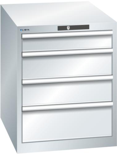 "longDescription": "LISTA Schubladenschrank, Lista Einheit: 27x36E, BxTxH: 564x725x700mm, Schubladen-Nutzfläche BxT: 459x612mm, Anzahl Schubladen: 4, Anzahl Fronthöhen (Tragkraft): 1x100mm (75kg), 2x150mm (75kg), 1x200mm (75kg), Schliessart: Key Lock, Standard-Schliessung mit Wechselyzlinder inkl. 2 Schlüsseln mit Schlüsselnummer, Farbe Gehäuse: Lichtgrau RAL 7035, Farbe Schubladen: Lichtgrau RAL 7035. Höchste Stabilität: Gehäuse bis 4t belastbar, Schubladen mit 75 oder 200 kg Tragkraft. Maximale Ausnutzung dank Vollauszug und optimaler Mantelhöhe der Schubladen. Exzellente Schutzeigenschaften gegen Schmutz, Flüssigkeiten und mechanische Beanspruchung durch geschlossenes Gehäuse mit schlag- und abriebfester Oberfläche. Überzeugende Sicherheit: Aushebesicherung gegen Herausfallen der Schubladen und Einzelschubladensperre als Kippschutz. Korrosionsschutz durch Elektrophorese-Tauchlackierung und umweltfreundlichen Pulverlack. Optimale Ordnung und Organisation dank speziellem LISTA-Einteilungsmaterial für jeden Zweck und gelochter, geschlitzter Schubladen. Professionelle Beschriftung mit Beschriftungssoftware LISTA Script und hochklappbarer Griffleiste zum Einlegen der Etiketten. Perfekte Laufruhe durch traversenlos geführten Differenzialauszug. Flexible Anpassungsmöglichkeiten durch vorperforierte Löcher für Tischplatten (Punchout), Rollen, Schubladen, Schliesssysteme für einfaches Um- und Nachrüsten<br>",