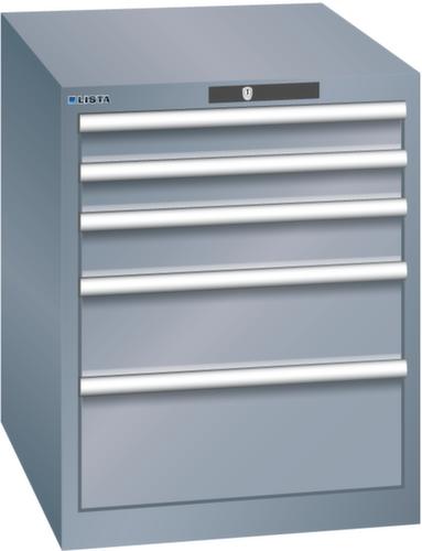 "longDescription": "LISTA Schubladenschrank, Lista Einheit: 27x36E, BxTxH: 564x725x700mm, Schubladen-Nutzfläche BxT: 459x612mm, Anzahl Schubladen: 5, Anzahl Fronthöhen (Tragkraft): 2x75mm (75kg), 1x100mm (75kg), 1x150mm (75kg), 1x200mm (75kg), Schliessart: Key Lock, Standard-Schliessung mit Wechselyzlinder inkl. 2 Schlüsseln mit Schlüsselnummer, Farbe Gehäuse: Grau metallic NCS S 6502-B, Farbe Schubladen: Grau metallic NCS S 6502-B. Höchste Stabilität: Gehäuse bis 4t belastbar, Schubladen mit 75 oder 200 kg Tragkraft. Maximale Ausnutzung dank Vollauszug und optimaler Mantelhöhe der Schubladen. Exzellente Schutzeigenschaften gegen Schmutz, Flüssigkeiten und mechanische Beanspruchung durch geschlossenes Gehäuse mit schlag- und abriebfester Oberfläche. Überzeugende Sicherheit: Aushebesicherung gegen Herausfallen der Schubladen und Einzelschubladensperre als Kippschutz. Korrosionsschutz durch Elektrophorese-Tauchlackierung und umweltfreundlichen Pulverlack. Optimale Ordnung und Organisation dank speziellem LISTA-Einteilungsmaterial für jeden Zweck und gelochter, geschlitzter Schubladen. Professionelle Beschriftung mit Beschriftungssoftware LISTA Script und hochklappbarer Griffleiste zum Einlegen der Etiketten. Perfekte Laufruhe durch traversenlos geführten Differenzialauszug. Flexible Anpassungsmöglichkeiten durch vorperforierte Löcher für Tischplatten (Punchout), Rollen, Schubladen, Schliesssysteme für einfaches Um- und Nachrüsten<br>",