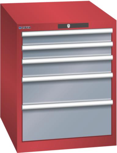 "longDescription": "LISTA Schubladenschrank, Lista Einheit: 27x36E, BxTxH: 564x725x700mm, Schubladen-Nutzfläche BxT: 459x612mm, Anzahl Schubladen: 5, Anzahl Fronthöhen (Tragkraft): 2x75mm (75kg), 1x100mm (75kg), 1x150mm (75kg), 1x200mm (75kg), Schliessart: Key Lock, Standard-Schliessung mit Wechselyzlinder inkl. 2 Schlüsseln mit Schlüsselnummer, Farbe Gehäuse: Rubinrot RAL 3003, Farbe Schubladen: Grau metallic NCS S 6502-B. Höchste Stabilität: Gehäuse bis 4t belastbar, Schubladen mit 75 oder 200 kg Tragkraft. Maximale Ausnutzung dank Vollauszug und optimaler Mantelhöhe der Schubladen. Exzellente Schutzeigenschaften gegen Schmutz, Flüssigkeiten und mechanische Beanspruchung durch geschlossenes Gehäuse mit schlag- und abriebfester Oberfläche. Überzeugende Sicherheit: Aushebesicherung gegen Herausfallen der Schubladen und Einzelschubladensperre als Kippschutz. Korrosionsschutz durch Elektrophorese-Tauchlackierung und umweltfreundlichen Pulverlack. Optimale Ordnung und Organisation dank speziellem LISTA-Einteilungsmaterial für jeden Zweck und gelochter, geschlitzter Schubladen. Professionelle Beschriftung mit Beschriftungssoftware LISTA Script und hochklappbarer Griffleiste zum Einlegen der Etiketten. Perfekte Laufruhe durch traversenlos geführten Differenzialauszug. Flexible Anpassungsmöglichkeiten durch vorperforierte Löcher für Tischplatten (Punchout), Rollen, Schubladen, Schliesssysteme für einfaches Um- und Nachrüsten<br>",