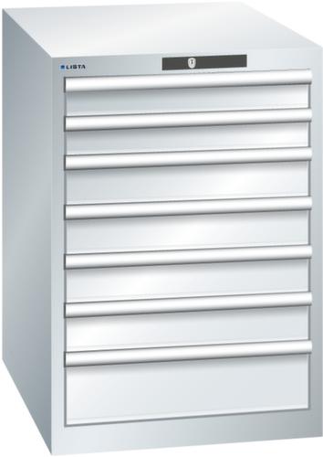 "longDescription": "LISTA Schubladenschrank, Lista Einheit: 27x36E, BxTxH: 564x725x800mm, Schubladen-Nutzfläche BxT: 459x612mm, Anzahl Schubladen: 7, Anzahl Fronthöhen (Tragkraft): 2x 75mm (75kg), 4x100mm (75kg), 1x150mm (75kg), Schliessart: Key Lock, Standard-Schliessung mit Wechselyzlinder inkl. 2 Schlüsseln mit Schlüsselnummer, Farbe Gehäuse: Lichtgrau RAL 7035, Farbe Schubladen: Lichtgrau RAL 7035. Höchste Stabilität: Gehäuse bis 4t belastbar, Schubladen mit 75 oder 200 kg Tragkraft. Maximale Ausnutzung dank Vollauszug und optimaler Mantelhöhe der Schubladen. Exzellente Schutzeigenschaften gegen Schmutz, Flüssigkeiten und mechanische Beanspruchung durch geschlossenes Gehäuse mit schlag- und abriebfester Oberfläche. Überzeugende Sicherheit: Aushebesicherung gegen Herausfallen der Schubladen und Einzelschubladensperre als Kippschutz. Korrosionsschutz durch Elektrophorese-Tauchlackierung und umweltfreundlichen Pulverlack. Optimale Ordnung und Organisation dank speziellem LISTA-Einteilungsmaterial für jeden Zweck und gelochter, geschlitzter Schubladen. Professionelle Beschriftung mit Beschriftungssoftware LISTA Script und hochklappbarer Griffleiste zum Einlegen der Etiketten. Perfekte Laufruhe durch traversenlos geführten Differenzialauszug. Flexible Anpassungsmöglichkeiten durch vorperforierte Löcher für Tischplatten (Punchout), Rollen, Schubladen, Schliesssysteme für einfaches Um- und Nachrüsten<br>",