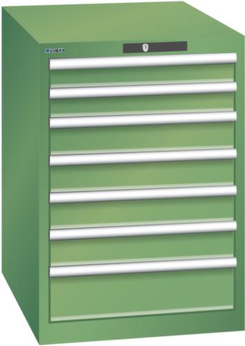 "longDescription": "LISTA Schubladenschrank, Lista Einheit: 27x36E, BxTxH: 564x725x800mm, Schubladen-Nutzfläche BxT: 459x612mm, Anzahl Schubladen: 7, Anzahl Fronthöhen (Tragkraft): 2x 75mm (75kg), 4x100mm (75kg), 1x150mm (75kg), Schliessart: Key Lock, Standard-Schliessung mit Wechselyzlinder inkl. 2 Schlüsseln mit Schlüsselnummer, Farbe Gehäuse: Resedagrün RAL 6011, Farbe Schubladen: Resedagrün RAL 6011. Höchste Stabilität: Gehäuse bis 4t belastbar, Schubladen mit 75 oder 200 kg Tragkraft. Maximale Ausnutzung dank Vollauszug und optimaler Mantelhöhe der Schubladen. Exzellente Schutzeigenschaften gegen Schmutz, Flüssigkeiten und mechanische Beanspruchung durch geschlossenes Gehäuse mit schlag- und abriebfester Oberfläche. Überzeugende Sicherheit: Aushebesicherung gegen Herausfallen der Schubladen und Einzelschubladensperre als Kippschutz. Korrosionsschutz durch Elektrophorese-Tauchlackierung und umweltfreundlichen Pulverlack. Optimale Ordnung und Organisation dank speziellem LISTA-Einteilungsmaterial für jeden Zweck und gelochter, geschlitzter Schubladen. Professionelle Beschriftung mit Beschriftungssoftware LISTA Script und hochklappbarer Griffleiste zum Einlegen der Etiketten. Perfekte Laufruhe durch traversenlos geführten Differenzialauszug. Flexible Anpassungsmöglichkeiten durch vorperforierte Löcher für Tischplatten (Punchout), Rollen, Schubladen, Schliesssysteme für einfaches Um- und Nachrüsten<br>",