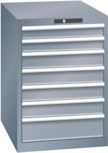 "longDescription": "LISTA Schubladenschrank, Lista Einheit: 27x36E, BxTxH: 564x725x800mm, Schubladen-Nutzfläche BxT: 459x612mm, Anzahl Schubladen: 7, Anzahl Fronthöhen (Tragkraft): 2x 75mm (75kg), 4x100mm (75kg), 1x150mm (75kg), Schliessart: Key Lock, Standard-Schliessung mit Wechselyzlinder inkl. 2 Schlüsseln mit Schlüsselnummer, Farbe Gehäuse: Grau metallic NCS S 6502-B, Farbe Schubladen: Grau metallic NCS S 6502-B. Höchste Stabilität: Gehäuse bis 4t belastbar, Schubladen mit 75 oder 200 kg Tragkraft. Maximale Ausnutzung dank Vollauszug und optimaler Mantelhöhe der Schubladen. Exzellente Schutzeigenschaften gegen Schmutz, Flüssigkeiten und mechanische Beanspruchung durch geschlossenes Gehäuse mit schlag- und abriebfester Oberfläche. Überzeugende Sicherheit: Aushebesicherung gegen Herausfallen der Schubladen und Einzelschubladensperre als Kippschutz. Korrosionsschutz durch Elektrophorese-Tauchlackierung und umweltfreundlichen Pulverlack. Optimale Ordnung und Organisation dank speziellem LISTA-Einteilungsmaterial für jeden Zweck und gelochter, geschlitzter Schubladen. Professionelle Beschriftung mit Beschriftungssoftware LISTA Script und hochklappbarer Griffleiste zum Einlegen der Etiketten. Perfekte Laufruhe durch traversenlos geführten Differenzialauszug. Flexible Anpassungsmöglichkeiten durch vorperforierte Löcher für Tischplatten (Punchout), Rollen, Schubladen, Schliesssysteme für einfaches Um- und Nachrüsten<br>",