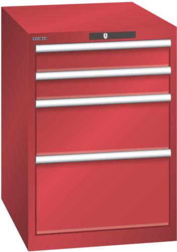 "longDescription": "LISTA Schubladenschrank, Lista Einheit: 27x36E, BxTxH: 564x725x800mm, Schubladen-Nutzfläche BxT: 459x612mm, Anzahl Schubladen: 4, Anzahl Fronthöhen (Tragkraft): 2x100mm (75kg), 1x200mm (75kg), 1x300mm (75kg), Schliessart: Code Lock, elektronisches Zahlenschloss mit 10 Ziffern für 4- bis 6-stellige Codes, bis 100 Codes, Farbe Gehäuse: Rubinrot RAL 3003, Farbe Schubladen: Rubinrot RAL 3003. Höchste Stabilität: Gehäuse bis 4t belastbar, Schubladen mit 75 oder 200 kg Tragkraft. Maximale Ausnutzung dank Vollauszug und optimaler Mantelhöhe der Schubladen. Exzellente Schutzeigenschaften gegen Schmutz, Flüssigkeiten und mechanische Beanspruchung durch geschlossenes Gehäuse mit schlag- und abriebfester Oberfläche. Überzeugende Sicherheit: Aushebesicherung gegen Herausfallen der Schubladen und Einzelschubladensperre als Kippschutz. Korrosionsschutz durch Elektrophorese-Tauchlackierung und umweltfreundlichen Pulverlack. Optimale Ordnung und Organisation dank speziellem LISTA-Einteilungsmaterial für jeden Zweck und gelochter, geschlitzter Schubladen. Professionelle Beschriftung mit Beschriftungssoftware LISTA Script und hochklappbarer Griffleiste zum Einlegen der Etiketten. Perfekte Laufruhe durch traversenlos geführten Differenzialauszug. Flexible Anpassungsmöglichkeiten durch vorperforierte Löcher für Tischplatten (Punchout), Rollen, Schubladen, Schliesssysteme für einfaches Um- und Nachrüsten<br>",