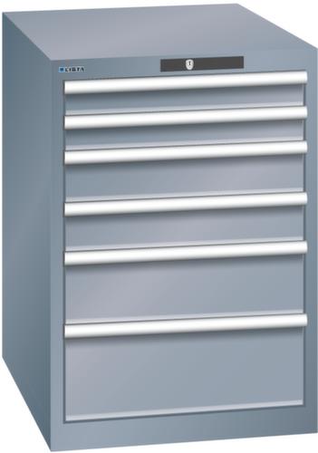 "longDescription": "LISTA Schubladenschrank, Lista Einheit: 27x36E, BxTxH: 564x725x800mm, Schubladen-Nutzfläche BxT: 459x612mm, Anzahl Schubladen: 6, Anzahl Fronthöhen (Tragkraft): 2x75mm (75kg), 2x100mm (75kg), 1 x150mm (75kg), 1x200mm (75kg), Schliessart: Key Lock, Standard-Schliessung mit Wechselyzlinder inkl. 2 Schlüsseln mit Schlüsselnummer, Farbe Gehäuse: Grau metallic NCS S 6502-B, Farbe Schubladen: Grau metallic NCS S 6502-B. Höchste Stabilität: Gehäuse bis 4t belastbar, Schubladen mit 75 oder 200 kg Tragkraft. Maximale Ausnutzung dank Vollauszug und optimaler Mantelhöhe der Schubladen. Exzellente Schutzeigenschaften gegen Schmutz, Flüssigkeiten und mechanische Beanspruchung durch geschlossenes Gehäuse mit schlag- und abriebfester Oberfläche. Überzeugende Sicherheit: Aushebesicherung gegen Herausfallen der Schubladen und Einzelschubladensperre als Kippschutz. Korrosionsschutz durch Elektrophorese-Tauchlackierung und umweltfreundlichen Pulverlack. Optimale Ordnung und Organisation dank speziellem LISTA-Einteilungsmaterial für jeden Zweck und gelochter, geschlitzter Schubladen. Professionelle Beschriftung mit Beschriftungssoftware LISTA Script und hochklappbarer Griffleiste zum Einlegen der Etiketten. Perfekte Laufruhe durch traversenlos geführten Differenzialauszug. Flexible Anpassungsmöglichkeiten durch vorperforierte Löcher für Tischplatten (Punchout), Rollen, Schubladen, Schliesssysteme für einfaches Um- und Nachrüsten<br>",