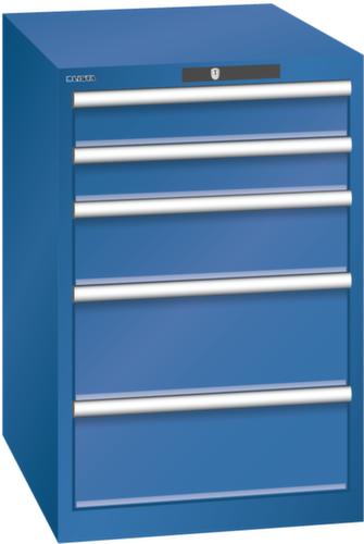 "longDescription": "LISTA Schubladenschrank, Lista Einheit: 27x36E, BxTxH: 564x725x850mm, Schubladen-Nutzfläche BxT: 459x612mm, Anzahl Schubladen: 5, Anzahl Fronthöhen (Tragkraft): 2x100mm (75kg), 1x150mm (75kg), 2x200mm (75kg), Schliessart: Key Lock, Standard-Schliessung mit Wechselyzlinder inkl. 2 Schlüsseln mit Schlüsselnummer, Farbe Gehäuse: Enzianblau RAL 5010, Farbe Schubladen: Enzianblau RAL 5010. Höchste Stabilität: Gehäuse bis 4t belastbar, Schubladen mit 75 oder 200 kg Tragkraft. Maximale Ausnutzung dank Vollauszug und optimaler Mantelhöhe der Schubladen. Exzellente Schutzeigenschaften gegen Schmutz, Flüssigkeiten und mechanische Beanspruchung durch geschlossenes Gehäuse mit schlag- und abriebfester Oberfläche. Überzeugende Sicherheit: Aushebesicherung gegen Herausfallen der Schubladen und Einzelschubladensperre als Kippschutz. Korrosionsschutz durch Elektrophorese-Tauchlackierung und umweltfreundlichen Pulverlack. Optimale Ordnung und Organisation dank speziellem LISTA-Einteilungsmaterial für jeden Zweck und gelochter, geschlitzter Schubladen. Professionelle Beschriftung mit Beschriftungssoftware LISTA Script und hochklappbarer Griffleiste zum Einlegen der Etiketten. Perfekte Laufruhe durch traversenlos geführten Differenzialauszug. Flexible Anpassungsmöglichkeiten durch vorperforierte Löcher für Tischplatten (Punchout), Rollen, Schubladen, Schliesssysteme für einfaches Um- und Nachrüsten<br>",