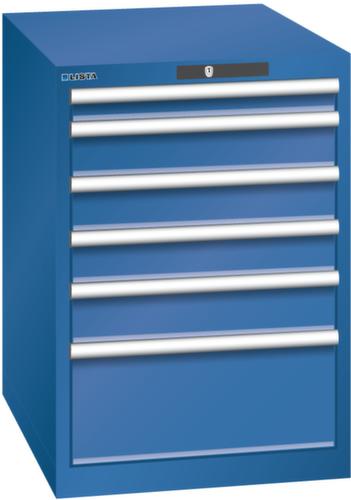 "longDescription": "LISTA Schubladenschrank, Lista Einheit: 27x36E, BxTxH: 564x725x850mm, Schubladen-Nutzfläche BxT: 459x612mm, Anzahl Schubladen: 6, Anzahl Fronthöhen (Tragkraft): 1x75mm (75kg), 3x100mm (75kg), 1x125mm (75kg), 1x250mm (75kg), Schliessart: Code Lock, elektronisches Zahlenschloss mit 10 Ziffern für 4- bis 6-stellige Codes, bis 100 Codes, Farbe Gehäuse: Enzianblau RAL 5010, Farbe Schubladen: Enzianblau RAL 5010. Höchste Stabilität: Gehäuse bis 4t belastbar, Schubladen mit 75 oder 200 kg Tragkraft. Maximale Ausnutzung dank Vollauszug und optimaler Mantelhöhe der Schubladen. Exzellente Schutzeigenschaften gegen Schmutz, Flüssigkeiten und mechanische Beanspruchung durch geschlossenes Gehäuse mit schlag- und abriebfester Oberfläche. Überzeugende Sicherheit: Aushebesicherung gegen Herausfallen der Schubladen und Einzelschubladensperre als Kippschutz. Korrosionsschutz durch Elektrophorese-Tauchlackierung und umweltfreundlichen Pulverlack. Optimale Ordnung und Organisation dank speziellem LISTA-Einteilungsmaterial für jeden Zweck und gelochter, geschlitzter Schubladen. Professionelle Beschriftung mit Beschriftungssoftware LISTA Script und hochklappbarer Griffleiste zum Einlegen der Etiketten. Perfekte Laufruhe durch traversenlos geführten Differenzialauszug. Flexible Anpassungsmöglichkeiten durch vorperforierte Löcher für Tischplatten (Punchout), Rollen, Schubladen, Schliesssysteme für einfaches Um- und Nachrüsten<br>",