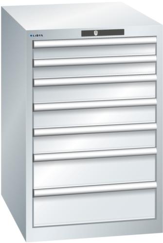 "longDescription": "LISTA Schubladenschrank, Lista Einheit: 27x36E, BxTxH: 564x725x850mm, Schubladen-Nutzfläche BxT: 459x612mm, Anzahl Schubladen: 7, Anzahl Fronthöhen (Tragkraft): 2x 75mm (75kg), 3x100mm (75kg), 2x150mm (75kg), Schliessart: Key Lock, Standard-Schliessung mit Wechselyzlinder inkl. 2 Schlüsseln mit Schlüsselnummer, Farbe Gehäuse: Lichtgrau RAL 7035, Farbe Schubladen: Lichtgrau RAL 7035. Höchste Stabilität: Gehäuse bis 4t belastbar, Schubladen mit 75 oder 200 kg Tragkraft. Maximale Ausnutzung dank Vollauszug und optimaler Mantelhöhe der Schubladen. Exzellente Schutzeigenschaften gegen Schmutz, Flüssigkeiten und mechanische Beanspruchung durch geschlossenes Gehäuse mit schlag- und abriebfester Oberfläche. Überzeugende Sicherheit: Aushebesicherung gegen Herausfallen der Schubladen und Einzelschubladensperre als Kippschutz. Korrosionsschutz durch Elektrophorese-Tauchlackierung und umweltfreundlichen Pulverlack. Optimale Ordnung und Organisation dank speziellem LISTA-Einteilungsmaterial für jeden Zweck und gelochter, geschlitzter Schubladen. Professionelle Beschriftung mit Beschriftungssoftware LISTA Script und hochklappbarer Griffleiste zum Einlegen der Etiketten. Perfekte Laufruhe durch traversenlos geführten Differenzialauszug. Flexible Anpassungsmöglichkeiten durch vorperforierte Löcher für Tischplatten (Punchout), Rollen, Schubladen, Schliesssysteme für einfaches Um- und Nachrüsten<br>",