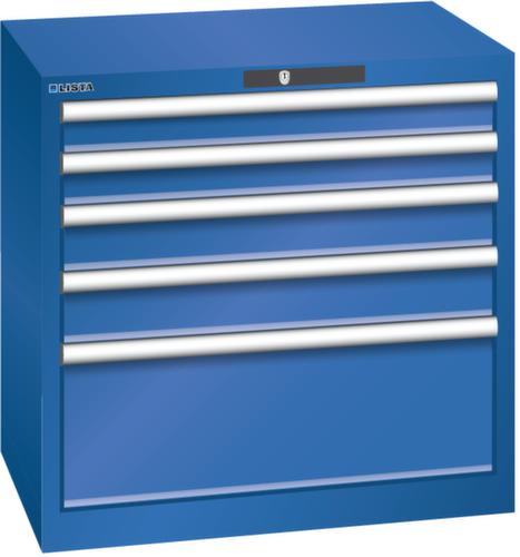 "longDescription": "LISTA Schubladenschrank, Lista Einheit: 36x27E, BxTxH: 717x572x700mm, Schubladen-Nutzfläche BxT: 612x459mm, Anzahl Schubladen: 5, Anzahl Fronthöhen (Tragkraft): 2x75mm (75kg), 2x100mm (75kg), 1x250mm (75kg), Schliessart: Code Lock, elektronisches Zahlenschloss mit 10 Ziffern für 4- bis 6-stellige Codes, bis 100 Codes, Farbe Gehäuse: Signalblau RAL 5005, Farbe Schubladen: Signalblau RAL 5005. Höchste Stabilität: Gehäuse bis 4t belastbar, Schubladen mit 75 oder 200 kg Tragkraft. Maximale Ausnutzung dank Vollauszug und optimaler Mantelhöhe der Schubladen. Exzellente Schutzeigenschaften gegen Schmutz, Flüssigkeiten und mechanische Beanspruchung durch geschlossenes Gehäuse mit schlag- und abriebfester Oberfläche. Überzeugende Sicherheit: Aushebesicherung gegen Herausfallen der Schubladen und Einzelschubladensperre als Kippschutz. Korrosionsschutz durch Elektrophorese-Tauchlackierung und umweltfreundlichen Pulverlack. Optimale Ordnung und Organisation dank speziellem LISTA-Einteilungsmaterial für jeden Zweck und gelochter, geschlitzter Schubladen. Professionelle Beschriftung mit Beschriftungssoftware LISTA Script und hochklappbarer Griffleiste zum Einlegen der Etiketten. Perfekte Laufruhe durch traversenlos geführten Differenzialauszug. Flexible Anpassungsmöglichkeiten durch vorperforierte Löcher für Tischplatten (Punchout), Rollen, Schubladen, Schliesssysteme für einfaches Um- und Nachrüsten<br>",