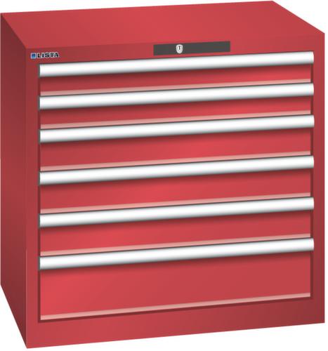 "longDescription": "LISTA Schubladenschrank, Lista Einheit: 36x27E, BxTxH: 717x572x700mm, Schubladen-Nutzfläche BxT: 612x459mm, Anzahl Schubladen: 6, Anzahl Fronthöhen (Tragkraft): 2x75mm (75kg), 3x100mm (75kg), 1x150mm (75kg), Schliessart: Key Lock, Standard-Schliessung mit Wechselyzlinder inkl. 2 Schlüsseln mit Schlüsselnummer, Farbe Gehäuse: Rubinrot RAL 3003, Farbe Schubladen: Rubinrot RAL 3003. Höchste Stabilität: Gehäuse bis 4t belastbar, Schubladen mit 75 oder 200 kg Tragkraft. Maximale Ausnutzung dank Vollauszug und optimaler Mantelhöhe der Schubladen. Exzellente Schutzeigenschaften gegen Schmutz, Flüssigkeiten und mechanische Beanspruchung durch geschlossenes Gehäuse mit schlag- und abriebfester Oberfläche. Überzeugende Sicherheit: Aushebesicherung gegen Herausfallen der Schubladen und Einzelschubladensperre als Kippschutz. Korrosionsschutz durch Elektrophorese-Tauchlackierung und umweltfreundlichen Pulverlack. Optimale Ordnung und Organisation dank speziellem LISTA-Einteilungsmaterial für jeden Zweck und gelochter, geschlitzter Schubladen. Professionelle Beschriftung mit Beschriftungssoftware LISTA Script und hochklappbarer Griffleiste zum Einlegen der Etiketten. Perfekte Laufruhe durch traversenlos geführten Differenzialauszug. Flexible Anpassungsmöglichkeiten durch vorperforierte Löcher für Tischplatten (Punchout), Rollen, Schubladen, Schliesssysteme für einfaches Um- und Nachrüsten<br>",