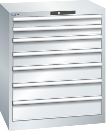 "longDescription": "LISTA Schubladenschrank, Lista Einheit: 36x27E, BxTxH: 717x572x850mm, Schubladen-Nutzfläche BxT: 612x459mm, Anzahl Schubladen: 7, Anzahl Fronthöhen (Tragkraft): 2x75mm (75kg), 2x100mm (75kg), 2x125mm (75kg), 1x150mm (75kg), Schliessart: Key Lock, Standard-Schliessung mit Wechselyzlinder inkl. 2 Schlüsseln mit Schlüsselnummer, Farbe Gehäuse: Lichtgrau RAL 7035, Farbe Schubladen: Lichtgrau RAL 7035. Höchste Stabilität: Gehäuse bis 4t belastbar, Schubladen mit 75 oder 200 kg Tragkraft. Maximale Ausnutzung dank Vollauszug und optimaler Mantelhöhe der Schubladen. Exzellente Schutzeigenschaften gegen Schmutz, Flüssigkeiten und mechanische Beanspruchung durch geschlossenes Gehäuse mit schlag- und abriebfester Oberfläche. Überzeugende Sicherheit: Aushebesicherung gegen Herausfallen der Schubladen und Einzelschubladensperre als Kippschutz. Korrosionsschutz durch Elektrophorese-Tauchlackierung und umweltfreundlichen Pulverlack. Optimale Ordnung und Organisation dank speziellem LISTA-Einteilungsmaterial für jeden Zweck und gelochter, geschlitzter Schubladen. Professionelle Beschriftung mit Beschriftungssoftware LISTA Script und hochklappbarer Griffleiste zum Einlegen der Etiketten. Perfekte Laufruhe durch traversenlos geführten Differenzialauszug. Flexible Anpassungsmöglichkeiten durch vorperforierte Löcher für Tischplatten (Punchout), Rollen, Schubladen, Schliesssysteme für einfaches Um- und Nachrüsten<br>",