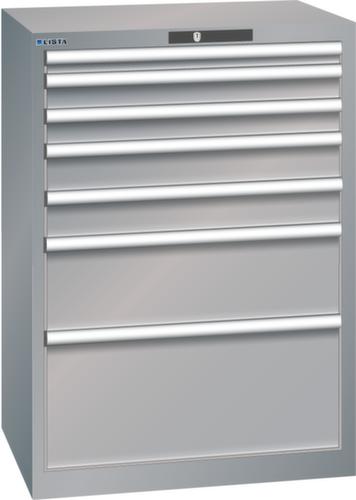"longDescription": "LISTA Schubladenschrank, Lista Einheit: 36x27E, BxTxH: 717x572x1000mm, Schubladen-Nutzfläche BxT: 612x459mm, Anzahl Schubladen: 7, Anzahl Fronthöhen (Tragkraft): 1x50mm (75kg), 2x75mm (75kg), 2x100mm (75kg), 1x200mm (75kg), 1x300mm (75kg), Schliessart: Code Lock, elektronisches Zahlenschloss mit 10 Ziffern für 4- bis 6-stellige Codes, bis 100 Codes, Farbe Gehäuse: Taubengrau NCS S 4502-B, Farbe Schubladen: Taubengrau NCS S 4502-B. Höchste Stabilität: Gehäuse bis 4t belastbar, Schubladen mit 75 oder 200 kg Tragkraft. Maximale Ausnutzung dank Vollauszug und optimaler Mantelhöhe der Schubladen. Exzellente Schutzeigenschaften gegen Schmutz, Flüssigkeiten und mechanische Beanspruchung durch geschlossenes Gehäuse mit schlag- und abriebfester Oberfläche. Überzeugende Sicherheit: Aushebesicherung gegen Herausfallen der Schubladen und Einzelschubladensperre als Kippschutz. Korrosionsschutz durch Elektrophorese-Tauchlackierung und umweltfreundlichen Pulverlack. Optimale Ordnung und Organisation dank speziellem LISTA-Einteilungsmaterial für jeden Zweck und gelochter, geschlitzter Schubladen. Professionelle Beschriftung mit Beschriftungssoftware LISTA Script und hochklappbarer Griffleiste zum Einlegen der Etiketten. Perfekte Laufruhe durch traversenlos geführten Differenzialauszug. Flexible Anpassungsmöglichkeiten durch vorperforierte Löcher für Tischplatten (Punchout), Rollen, Schubladen, Schliesssysteme für einfaches Um- und Nachrüsten<br>",