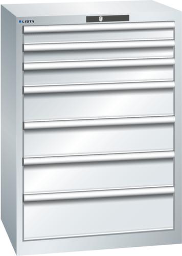 "longDescription": "LISTA Schubladenschrank, Lista Einheit: 36x27E, BxTxH: 717x572x1000mm, Schubladen-Nutzfläche BxT: 612x459mm, Anzahl Schubladen: 7, Anzahl Fronthöhen (Tragkraft): 2x75mm (75kg), 1x100mm (75kg), 3x150mm (75kg), 1x200mm (75kg), Schliessart: Code Lock, elektronisches Zahlenschloss mit 10 Ziffern für 4- bis 6-stellige Codes, bis 100 Codes, Farbe Gehäuse: Lichtgrau RAL 7035, Farbe Schubladen: Lichtgrau RAL 7035. Höchste Stabilität: Gehäuse bis 4t belastbar, Schubladen mit 75 oder 200 kg Tragkraft. Maximale Ausnutzung dank Vollauszug und optimaler Mantelhöhe der Schubladen. Exzellente Schutzeigenschaften gegen Schmutz, Flüssigkeiten und mechanische Beanspruchung durch geschlossenes Gehäuse mit schlag- und abriebfester Oberfläche. Überzeugende Sicherheit: Aushebesicherung gegen Herausfallen der Schubladen und Einzelschubladensperre als Kippschutz. Korrosionsschutz durch Elektrophorese-Tauchlackierung und umweltfreundlichen Pulverlack. Optimale Ordnung und Organisation dank speziellem LISTA-Einteilungsmaterial für jeden Zweck und gelochter, geschlitzter Schubladen. Professionelle Beschriftung mit Beschriftungssoftware LISTA Script und hochklappbarer Griffleiste zum Einlegen der Etiketten. Perfekte Laufruhe durch traversenlos geführten Differenzialauszug. Flexible Anpassungsmöglichkeiten durch vorperforierte Löcher für Tischplatten (Punchout), Rollen, Schubladen, Schliesssysteme für einfaches Um- und Nachrüsten<br>",