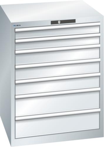 "longDescription": "LISTA Schubladenschrank, Lista Einheit: 36x36E, BxTxH: 717x725x850mm, Schubladen-Nutzfläche BxT: 612x612mm, Anzahl Schubladen: 7, Anzahl Fronthöhen (Tragkraft): 2x 75mm (75kg), 3x100mm (75kg), 2x150mm (75kg), Schliessart: Key Lock, Standard-Schliessung mit Wechselyzlinder inkl. 2 Schlüsseln mit Schlüsselnummer, Farbe Gehäuse: Lichtgrau RAL 7035, Farbe Schubladen: Lichtgrau RAL 7035. Höchste Stabilität: Gehäuse bis 4t belastbar, Schubladen mit 75 oder 200 kg Tragkraft. Maximale Ausnutzung dank Vollauszug und optimaler Mantelhöhe der Schubladen. Exzellente Schutzeigenschaften gegen Schmutz, Flüssigkeiten und mechanische Beanspruchung durch geschlossenes Gehäuse mit schlag- und abriebfester Oberfläche. Überzeugende Sicherheit: Aushebesicherung gegen Herausfallen der Schubladen und Einzelschubladensperre als Kippschutz. Korrosionsschutz durch Elektrophorese-Tauchlackierung und umweltfreundlichen Pulverlack. Optimale Ordnung und Organisation dank speziellem LISTA-Einteilungsmaterial für jeden Zweck und gelochter, geschlitzter Schubladen. Professionelle Beschriftung mit Beschriftungssoftware LISTA Script und hochklappbarer Griffleiste zum Einlegen der Etiketten. Perfekte Laufruhe durch traversenlos geführten Differenzialauszug. Flexible Anpassungsmöglichkeiten durch vorperforierte Löcher für Tischplatten (Punchout), Rollen, Schubladen, Schliesssysteme für einfaches Um- und Nachrüsten<br>",