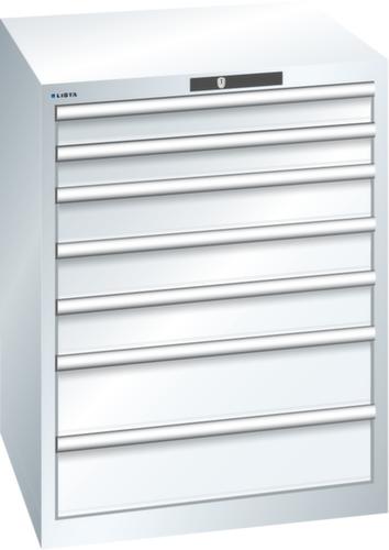"longDescription": "LISTA Schubladenschrank, Lista Einheit: 36x36E, BxTxH: 717x725x850mm, Schubladen-Nutzfläche BxT: 612x612mm, Anzahl Schubladen: 7, Anzahl Fronthöhen (Tragkraft): 2x 75mm (75kg), 3x100mm (75kg), 2x150mm (75kg), Schliessart: Key Lock, Standard-Schliessung mit Wechselyzlinder inkl. 2 Schlüsseln mit Schlüsselnummer, Farbe Gehäuse: Reinweiss RAL 9010, Farbe Schubladen: Reinweiss RAL 9010. Höchste Stabilität: Gehäuse bis 4t belastbar, Schubladen mit 75 oder 200 kg Tragkraft. Maximale Ausnutzung dank Vollauszug und optimaler Mantelhöhe der Schubladen. Exzellente Schutzeigenschaften gegen Schmutz, Flüssigkeiten und mechanische Beanspruchung durch geschlossenes Gehäuse mit schlag- und abriebfester Oberfläche. Überzeugende Sicherheit: Aushebesicherung gegen Herausfallen der Schubladen und Einzelschubladensperre als Kippschutz. Korrosionsschutz durch Elektrophorese-Tauchlackierung und umweltfreundlichen Pulverlack. Optimale Ordnung und Organisation dank speziellem LISTA-Einteilungsmaterial für jeden Zweck und gelochter, geschlitzter Schubladen. Professionelle Beschriftung mit Beschriftungssoftware LISTA Script und hochklappbarer Griffleiste zum Einlegen der Etiketten. Perfekte Laufruhe durch traversenlos geführten Differenzialauszug. Flexible Anpassungsmöglichkeiten durch vorperforierte Löcher für Tischplatten (Punchout), Rollen, Schubladen, Schliesssysteme für einfaches Um- und Nachrüsten<br>",