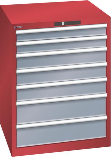 "longDescription": "LISTA Schubladenschrank, Lista Einheit: 36x36E, BxTxH: 717x725x850mm, Schubladen-Nutzfläche BxT: 612x612mm, Anzahl Schubladen: 7, Anzahl Fronthöhen (Tragkraft): 2x 75mm (75kg), 3x100mm (75kg), 2x150mm (75kg), Schliessart: Key Lock, Standard-Schliessung mit Wechselyzlinder inkl. 2 Schlüsseln mit Schlüsselnummer, Farbe Gehäuse: Rubinrot RAL 3003, Farbe Schubladen: Grau metallic NCS S 6502-B. Höchste Stabilität: Gehäuse bis 4t belastbar, Schubladen mit 75 oder 200 kg Tragkraft. Maximale Ausnutzung dank Vollauszug und optimaler Mantelhöhe der Schubladen. Exzellente Schutzeigenschaften gegen Schmutz, Flüssigkeiten und mechanische Beanspruchung durch geschlossenes Gehäuse mit schlag- und abriebfester Oberfläche. Überzeugende Sicherheit: Aushebesicherung gegen Herausfallen der Schubladen und Einzelschubladensperre als Kippschutz. Korrosionsschutz durch Elektrophorese-Tauchlackierung und umweltfreundlichen Pulverlack. Optimale Ordnung und Organisation dank speziellem LISTA-Einteilungsmaterial für jeden Zweck und gelochter, geschlitzter Schubladen. Professionelle Beschriftung mit Beschriftungssoftware LISTA Script und hochklappbarer Griffleiste zum Einlegen der Etiketten. Perfekte Laufruhe durch traversenlos geführten Differenzialauszug. Flexible Anpassungsmöglichkeiten durch vorperforierte Löcher für Tischplatten (Punchout), Rollen, Schubladen, Schliesssysteme für einfaches Um- und Nachrüsten<br>",