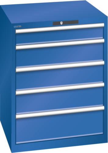 "longDescription": "LISTA Schubladenschrank, Lista Einheit: 36x36E, BxTxH: 717x725x850mm, Schubladen-Nutzfläche BxT: 612x612mm, Anzahl Schubladen: 5, Anzahl Fronthöhen (Tragkraft): 1x100mm (75kg), 3x150mm (75kg), 1x200mm (75kg), Schliessart: Code Lock, elektronisches Zahlenschloss mit 10 Ziffern für 4- bis 6-stellige Codes, bis 100 Codes, Farbe Gehäuse: Signalblau RAL 5005, Farbe Schubladen: Signalblau RAL 5005. Höchste Stabilität: Gehäuse bis 4t belastbar, Schubladen mit 75 oder 200 kg Tragkraft. Maximale Ausnutzung dank Vollauszug und optimaler Mantelhöhe der Schubladen. Exzellente Schutzeigenschaften gegen Schmutz, Flüssigkeiten und mechanische Beanspruchung durch geschlossenes Gehäuse mit schlag- und abriebfester Oberfläche. Überzeugende Sicherheit: Aushebesicherung gegen Herausfallen der Schubladen und Einzelschubladensperre als Kippschutz. Korrosionsschutz durch Elektrophorese-Tauchlackierung und umweltfreundlichen Pulverlack. Optimale Ordnung und Organisation dank speziellem LISTA-Einteilungsmaterial für jeden Zweck und gelochter, geschlitzter Schubladen. Professionelle Beschriftung mit Beschriftungssoftware LISTA Script und hochklappbarer Griffleiste zum Einlegen der Etiketten. Perfekte Laufruhe durch traversenlos geführten Differenzialauszug. Flexible Anpassungsmöglichkeiten durch vorperforierte Löcher für Tischplatten (Punchout), Rollen, Schubladen, Schliesssysteme für einfaches Um- und Nachrüsten<br>",