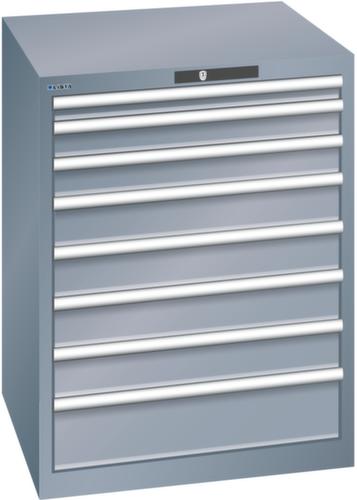 "longDescription": "LISTA Schubladenschrank, Lista Einheit: 36x36E, BxTxH: 717x725x850mm, Schubladen-Nutzfläche BxT: 612x612mm, Anzahl Schubladen: 8, Anzahl Fronthöhen (Tragkraft): 1x 50mm (75kg), 2x 75mm (200kg), 4x100mm (200kg), 1x150mm (200kg), Schliessart: Code Lock, elektronisches Zahlenschloss mit 10 Ziffern für 4- bis 6-stellige Codes, bis 100 Codes, Farbe Gehäuse: Grau metallic NCS S 6502-B, Farbe Schubladen: Grau metallic NCS S 6502-B. Höchste Stabilität: Gehäuse bis 4t belastbar, Schubladen mit 75 oder 200 kg Tragkraft. Maximale Ausnutzung dank Vollauszug und optimaler Mantelhöhe der Schubladen. Exzellente Schutzeigenschaften gegen Schmutz, Flüssigkeiten und mechanische Beanspruchung durch geschlossenes Gehäuse mit schlag- und abriebfester Oberfläche. Überzeugende Sicherheit: Aushebesicherung gegen Herausfallen der Schubladen und Einzelschubladensperre als Kippschutz. Korrosionsschutz durch Elektrophorese-Tauchlackierung und umweltfreundlichen Pulverlack. Optimale Ordnung und Organisation dank speziellem LISTA-Einteilungsmaterial für jeden Zweck und gelochter, geschlitzter Schubladen. Professionelle Beschriftung mit Beschriftungssoftware LISTA Script und hochklappbarer Griffleiste zum Einlegen der Etiketten. Perfekte Laufruhe durch traversenlos geführten Differenzialauszug. Flexible Anpassungsmöglichkeiten durch vorperforierte Löcher für Tischplatten (Punchout), Rollen, Schubladen, Schliesssysteme für einfaches Um- und Nachrüsten<br>",