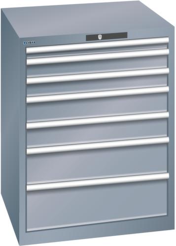 "longDescription": "LISTA Schubladenschrank, Lista Einheit: 36x36E, BxTxH: 717x725x850mm, Schubladen-Nutzfläche BxT: 612x612mm, Anzahl Schubladen: 7, Anzahl Fronthöhen (Tragkraft): 1x50mm (75kg), 2x75mm (200kg), 2x100mm (200kg), 1x150mm (200kg), 1x200mm (200kg), Schliessart: Code Lock, elektronisches Zahlenschloss mit 10 Ziffern für 4- bis 6-stellige Codes, bis 100 Codes, Farbe Gehäuse: Grau metallic NCS S 6502-B, Farbe Schubladen: Grau metallic NCS S 6502-B. Höchste Stabilität: Gehäuse bis 4t belastbar, Schubladen mit 75 oder 200 kg Tragkraft. Maximale Ausnutzung dank Vollauszug und optimaler Mantelhöhe der Schubladen. Exzellente Schutzeigenschaften gegen Schmutz, Flüssigkeiten und mechanische Beanspruchung durch geschlossenes Gehäuse mit schlag- und abriebfester Oberfläche. Überzeugende Sicherheit: Aushebesicherung gegen Herausfallen der Schubladen und Einzelschubladensperre als Kippschutz. Korrosionsschutz durch Elektrophorese-Tauchlackierung und umweltfreundlichen Pulverlack. Optimale Ordnung und Organisation dank speziellem LISTA-Einteilungsmaterial für jeden Zweck und gelochter, geschlitzter Schubladen. Professionelle Beschriftung mit Beschriftungssoftware LISTA Script und hochklappbarer Griffleiste zum Einlegen der Etiketten. Perfekte Laufruhe durch traversenlos geführten Differenzialauszug. Flexible Anpassungsmöglichkeiten durch vorperforierte Löcher für Tischplatten (Punchout), Rollen, Schubladen, Schliesssysteme für einfaches Um- und Nachrüsten<br>",