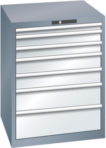 "longDescription": "LISTA Schubladenschrank, Lista Einheit: 36x36E, BxTxH: 717x725x850mm, Schubladen-Nutzfläche BxT: 612x612mm, Anzahl Schubladen: 7, Anzahl Fronthöhen (Tragkraft): 1x50mm (75kg), 2x75mm (200kg), 2x100mm (200kg), 1x150mm (200kg), 1x200mm (200kg), Schliessart: Code Lock, elektronisches Zahlenschloss mit 10 Ziffern für 4- bis 6-stellige Codes, bis 100 Codes, Farbe Gehäuse: Grau metallic NCS S 6502-B, Farbe Schubladen: Lichtgrau RAL 7035. Höchste Stabilität: Gehäuse bis 4t belastbar, Schubladen mit 75 oder 200 kg Tragkraft. Maximale Ausnutzung dank Vollauszug und optimaler Mantelhöhe der Schubladen. Exzellente Schutzeigenschaften gegen Schmutz, Flüssigkeiten und mechanische Beanspruchung durch geschlossenes Gehäuse mit schlag- und abriebfester Oberfläche. Überzeugende Sicherheit: Aushebesicherung gegen Herausfallen der Schubladen und Einzelschubladensperre als Kippschutz. Korrosionsschutz durch Elektrophorese-Tauchlackierung und umweltfreundlichen Pulverlack. Optimale Ordnung und Organisation dank speziellem LISTA-Einteilungsmaterial für jeden Zweck und gelochter, geschlitzter Schubladen. Professionelle Beschriftung mit Beschriftungssoftware LISTA Script und hochklappbarer Griffleiste zum Einlegen der Etiketten. Perfekte Laufruhe durch traversenlos geführten Differenzialauszug. Flexible Anpassungsmöglichkeiten durch vorperforierte Löcher für Tischplatten (Punchout), Rollen, Schubladen, Schliesssysteme für einfaches Um- und Nachrüsten<br>",