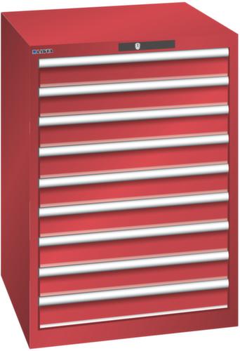 "longDescription": "LISTA Schubladenschrank, Lista Einheit: 36x36E, BxTxH: 717x725x1000mm, Schubladen-Nutzfläche BxT: 612x612mm, Anzahl Schubladen: 9, Anzahl Fronthöhen (Tragkraft): 9x100mm (75kg), Schliessart: Key Lock, Standard-Schliessung mit Wechselyzlinder inkl. 2 Schlüsseln mit Schlüsselnummer, Farbe Gehäuse: Rubinrot RAL 3003, Farbe Schubladen: Rubinrot RAL 3003. Höchste Stabilität: Gehäuse bis 4t belastbar, Schubladen mit 75 oder 200 kg Tragkraft. Maximale Ausnutzung dank Vollauszug und optimaler Mantelhöhe der Schubladen. Exzellente Schutzeigenschaften gegen Schmutz, Flüssigkeiten und mechanische Beanspruchung durch geschlossenes Gehäuse mit schlag- und abriebfester Oberfläche. Überzeugende Sicherheit: Aushebesicherung gegen Herausfallen der Schubladen und Einzelschubladensperre als Kippschutz. Korrosionsschutz durch Elektrophorese-Tauchlackierung und umweltfreundlichen Pulverlack. Optimale Ordnung und Organisation dank speziellem LISTA-Einteilungsmaterial für jeden Zweck und gelochter, geschlitzter Schubladen. Professionelle Beschriftung mit Beschriftungssoftware LISTA Script und hochklappbarer Griffleiste zum Einlegen der Etiketten. Perfekte Laufruhe durch traversenlos geführten Differenzialauszug. Flexible Anpassungsmöglichkeiten durch vorperforierte Löcher für Tischplatten (Punchout), Rollen, Schubladen, Schliesssysteme für einfaches Um- und Nachrüsten<br>",
