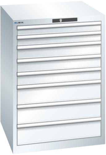 "longDescription": "LISTA Schubladenschrank, Lista Einheit: 36x36E, BxTxH: 717x725x1000mm, Schubladen-Nutzfläche BxT: 612x612mm, Anzahl Schubladen: 8, Anzahl Fronthöhen (Tragkraft): 2x 75mm (75kg), 3x100mm (75kg), 3x150mm (75kg), Schliessart: Key Lock, Standard-Schliessung mit Wechselyzlinder inkl. 2 Schlüsseln mit Schlüsselnummer, Farbe Gehäuse: Reinweiss RAL 9010, Farbe Schubladen: Reinweiss RAL 9010. Höchste Stabilität: Gehäuse bis 4t belastbar, Schubladen mit 75 oder 200 kg Tragkraft. Maximale Ausnutzung dank Vollauszug und optimaler Mantelhöhe der Schubladen. Exzellente Schutzeigenschaften gegen Schmutz, Flüssigkeiten und mechanische Beanspruchung durch geschlossenes Gehäuse mit schlag- und abriebfester Oberfläche. Überzeugende Sicherheit: Aushebesicherung gegen Herausfallen der Schubladen und Einzelschubladensperre als Kippschutz. Korrosionsschutz durch Elektrophorese-Tauchlackierung und umweltfreundlichen Pulverlack. Optimale Ordnung und Organisation dank speziellem LISTA-Einteilungsmaterial für jeden Zweck und gelochter, geschlitzter Schubladen. Professionelle Beschriftung mit Beschriftungssoftware LISTA Script und hochklappbarer Griffleiste zum Einlegen der Etiketten. Perfekte Laufruhe durch traversenlos geführten Differenzialauszug. Flexible Anpassungsmöglichkeiten durch vorperforierte Löcher für Tischplatten (Punchout), Rollen, Schubladen, Schliesssysteme für einfaches Um- und Nachrüsten<br>",