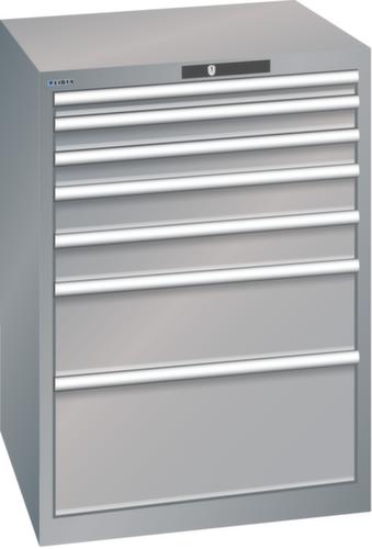 "longDescription": "LISTA Schubladenschrank, Lista Einheit: 36x36E, BxTxH: 717x725x1000mm, Schubladen-Nutzfläche BxT: 612x612mm, Anzahl Schubladen: 7, Anzahl Fronthöhen (Tragkraft): 1x 50mm (75kg), 2x 75mm (75kg), 2x100mm (75kg), 1x200mm (75kg), 1x300mm (75kg), Schliessart: Key Lock, Standard-Schliessung mit Wechselyzlinder inkl. 2 Schlüsseln mit Schlüsselnummer, Farbe Gehäuse: Taubengrau NCS S 4502-B, Farbe Schubladen: Taubengrau NCS S 4502-B. Höchste Stabilität: Gehäuse bis 4t belastbar, Schubladen mit 75 oder 200 kg Tragkraft. Maximale Ausnutzung dank Vollauszug und optimaler Mantelhöhe der Schubladen. Exzellente Schutzeigenschaften gegen Schmutz, Flüssigkeiten und mechanische Beanspruchung durch geschlossenes Gehäuse mit schlag- und abriebfester Oberfläche. Überzeugende Sicherheit: Aushebesicherung gegen Herausfallen der Schubladen und Einzelschubladensperre als Kippschutz. Korrosionsschutz durch Elektrophorese-Tauchlackierung und umweltfreundlichen Pulverlack. Optimale Ordnung und Organisation dank speziellem LISTA-Einteilungsmaterial für jeden Zweck und gelochter, geschlitzter Schubladen. Professionelle Beschriftung mit Beschriftungssoftware LISTA Script und hochklappbarer Griffleiste zum Einlegen der Etiketten. Perfekte Laufruhe durch traversenlos geführten Differenzialauszug. Flexible Anpassungsmöglichkeiten durch vorperforierte Löcher für Tischplatten (Punchout), Rollen, Schubladen, Schliesssysteme für einfaches Um- und Nachrüsten<br>",