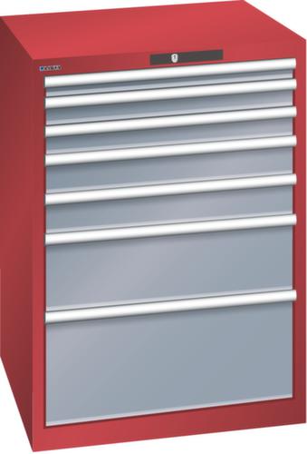 "longDescription": "LISTA Schubladenschrank, Lista Einheit: 36x36E, BxTxH: 717x725x1000mm, Schubladen-Nutzfläche BxT: 612x612mm, Anzahl Schubladen: 7, Anzahl Fronthöhen (Tragkraft): 1x 50mm (75kg), 2x 75mm (75kg), 2x100mm (75kg), 1x200mm (75kg), 1x300mm (75kg), Schliessart: Key Lock, Standard-Schliessung mit Wechselyzlinder inkl. 2 Schlüsseln mit Schlüsselnummer, Farbe Gehäuse: Rubinrot RAL 3003, Farbe Schubladen: Grau metallic NCS S 6502-B. Höchste Stabilität: Gehäuse bis 4t belastbar, Schubladen mit 75 oder 200 kg Tragkraft. Maximale Ausnutzung dank Vollauszug und optimaler Mantelhöhe der Schubladen. Exzellente Schutzeigenschaften gegen Schmutz, Flüssigkeiten und mechanische Beanspruchung durch geschlossenes Gehäuse mit schlag- und abriebfester Oberfläche. Überzeugende Sicherheit: Aushebesicherung gegen Herausfallen der Schubladen und Einzelschubladensperre als Kippschutz. Korrosionsschutz durch Elektrophorese-Tauchlackierung und umweltfreundlichen Pulverlack. Optimale Ordnung und Organisation dank speziellem LISTA-Einteilungsmaterial für jeden Zweck und gelochter, geschlitzter Schubladen. Professionelle Beschriftung mit Beschriftungssoftware LISTA Script und hochklappbarer Griffleiste zum Einlegen der Etiketten. Perfekte Laufruhe durch traversenlos geführten Differenzialauszug. Flexible Anpassungsmöglichkeiten durch vorperforierte Löcher für Tischplatten (Punchout), Rollen, Schubladen, Schliesssysteme für einfaches Um- und Nachrüsten<br>",