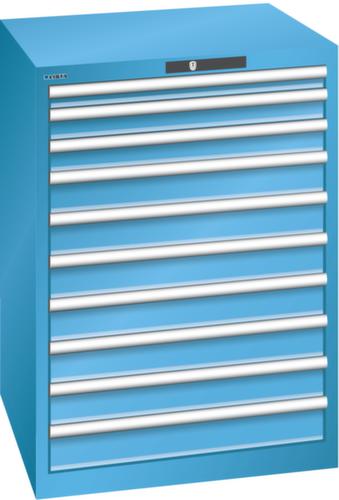 "longDescription": "LISTA Schubladenschrank, Lista Einheit: 36x36E, BxTxH: 717x725x1000mm, Schubladen-Nutzfläche BxT: 612x612mm, Anzahl Schubladen: 10, Anzahl Fronthöhen (Tragkraft): 1x 50mm (75kg), 2x 75mm (200kg), 7x100mm (200kg), Schliessart: Key Lock, Standard-Schliessung mit Wechselyzlinder inkl. 2 Schlüsseln mit Schlüsselnummer, Farbe Gehäuse: Lichtblau RAL 5012, Farbe Schubladen: Lichtblau RAL 5012. Höchste Stabilität: Gehäuse bis 4t belastbar, Schubladen mit 75 oder 200 kg Tragkraft. Maximale Ausnutzung dank Vollauszug und optimaler Mantelhöhe der Schubladen. Exzellente Schutzeigenschaften gegen Schmutz, Flüssigkeiten und mechanische Beanspruchung durch geschlossenes Gehäuse mit schlag- und abriebfester Oberfläche. Überzeugende Sicherheit: Aushebesicherung gegen Herausfallen der Schubladen und Einzelschubladensperre als Kippschutz. Korrosionsschutz durch Elektrophorese-Tauchlackierung und umweltfreundlichen Pulverlack. Optimale Ordnung und Organisation dank speziellem LISTA-Einteilungsmaterial für jeden Zweck und gelochter, geschlitzter Schubladen. Professionelle Beschriftung mit Beschriftungssoftware LISTA Script und hochklappbarer Griffleiste zum Einlegen der Etiketten. Perfekte Laufruhe durch traversenlos geführten Differenzialauszug. Flexible Anpassungsmöglichkeiten durch vorperforierte Löcher für Tischplatten (Punchout), Rollen, Schubladen, Schliesssysteme für einfaches Um- und Nachrüsten<br>",