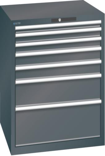 "longDescription": "LISTA Schubladenschrank, Lista Einheit: 36x36E, BxTxH: 717x725x1000mm, Schubladen-Nutzfläche BxT: 612x612mm, Anzahl Schubladen: 7, Anzahl Fronthöhen (Tragkraft): 1x 50mm (75kg), 2x 75mm (200kg), 2x100mm (200kg), 1x200mm (200kg), 1x300mm (200kg), Schliessart: Key Lock, Standard-Schliessung mit Wechselyzlinder inkl. 2 Schlüsseln mit Schlüsselnummer, Farbe Gehäuse: Schwarz NCS S 9000-N, Farbe Schubladen: Schwarz NCS S 9000-N. Höchste Stabilität: Gehäuse bis 4t belastbar, Schubladen mit 75 oder 200 kg Tragkraft. Maximale Ausnutzung dank Vollauszug und optimaler Mantelhöhe der Schubladen. Exzellente Schutzeigenschaften gegen Schmutz, Flüssigkeiten und mechanische Beanspruchung durch geschlossenes Gehäuse mit schlag- und abriebfester Oberfläche. Überzeugende Sicherheit: Aushebesicherung gegen Herausfallen der Schubladen und Einzelschubladensperre als Kippschutz. Korrosionsschutz durch Elektrophorese-Tauchlackierung und umweltfreundlichen Pulverlack. Optimale Ordnung und Organisation dank speziellem LISTA-Einteilungsmaterial für jeden Zweck und gelochter, geschlitzter Schubladen. Professionelle Beschriftung mit Beschriftungssoftware LISTA Script und hochklappbarer Griffleiste zum Einlegen der Etiketten. Perfekte Laufruhe durch traversenlos geführten Differenzialauszug. Flexible Anpassungsmöglichkeiten durch vorperforierte Löcher für Tischplatten (Punchout), Rollen, Schubladen, Schliesssysteme für einfaches Um- und Nachrüsten<br>",
