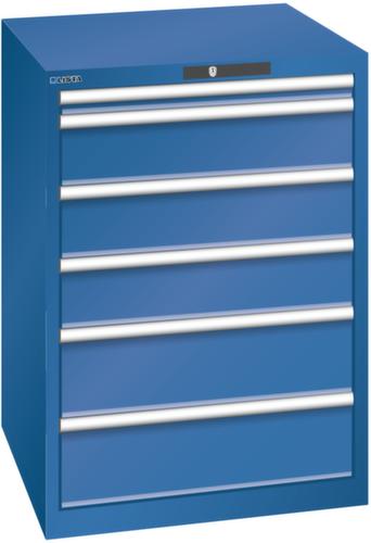 "longDescription": "LISTA Schubladenschrank, Lista Einheit: 36x36E, BxTxH: 717x725x1000mm, Schubladen-Nutzfläche BxT: 612x612mm, Anzahl Schubladen: 6, Anzahl Fronthöhen (Tragkraft): 1x 50mm (75kg), 3x150mm (75kg), 2x200mm (75kg), Schliessart: Code Lock, elektronisches Zahlenschloss mit 10 Ziffern für 4- bis 6-stellige Codes, bis 100 Codes, Farbe Gehäuse: Enzianblau RAL 5010, Farbe Schubladen: Enzianblau RAL 5010. Höchste Stabilität: Gehäuse bis 4t belastbar, Schubladen mit 75 oder 200 kg Tragkraft. Maximale Ausnutzung dank Vollauszug und optimaler Mantelhöhe der Schubladen. Exzellente Schutzeigenschaften gegen Schmutz, Flüssigkeiten und mechanische Beanspruchung durch geschlossenes Gehäuse mit schlag- und abriebfester Oberfläche. Überzeugende Sicherheit: Aushebesicherung gegen Herausfallen der Schubladen und Einzelschubladensperre als Kippschutz. Korrosionsschutz durch Elektrophorese-Tauchlackierung und umweltfreundlichen Pulverlack. Optimale Ordnung und Organisation dank speziellem LISTA-Einteilungsmaterial für jeden Zweck und gelochter, geschlitzter Schubladen. Professionelle Beschriftung mit Beschriftungssoftware LISTA Script und hochklappbarer Griffleiste zum Einlegen der Etiketten. Perfekte Laufruhe durch traversenlos geführten Differenzialauszug. Flexible Anpassungsmöglichkeiten durch vorperforierte Löcher für Tischplatten (Punchout), Rollen, Schubladen, Schliesssysteme für einfaches Um- und Nachrüsten<br>",