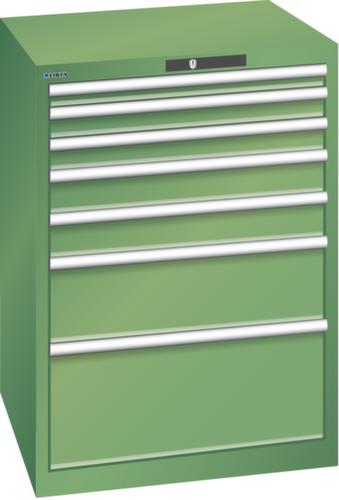 "longDescription": "LISTA Schubladenschrank, Lista Einheit: 36x36E, BxTxH: 717x725x1000mm, Schubladen-Nutzfläche BxT: 612x612mm, Anzahl Schubladen: 7, Anzahl Fronthöhen (Tragkraft): 1x 50mm (75kg), 2x 75mm (75kg), 2x100mm (75kg), 1x200mm (75kg), 1x300mm (75kg), Schliessart: Code Lock, elektronisches Zahlenschloss mit 10 Ziffern für 4- bis 6-stellige Codes, bis 100 Codes, Farbe Gehäuse: Resedagrün RAL 6011, Farbe Schubladen: Resedagrün RAL 6011. Höchste Stabilität: Gehäuse bis 4t belastbar, Schubladen mit 75 oder 200 kg Tragkraft. Maximale Ausnutzung dank Vollauszug und optimaler Mantelhöhe der Schubladen. Exzellente Schutzeigenschaften gegen Schmutz, Flüssigkeiten und mechanische Beanspruchung durch geschlossenes Gehäuse mit schlag- und abriebfester Oberfläche. Überzeugende Sicherheit: Aushebesicherung gegen Herausfallen der Schubladen und Einzelschubladensperre als Kippschutz. Korrosionsschutz durch Elektrophorese-Tauchlackierung und umweltfreundlichen Pulverlack. Optimale Ordnung und Organisation dank speziellem LISTA-Einteilungsmaterial für jeden Zweck und gelochter, geschlitzter Schubladen. Professionelle Beschriftung mit Beschriftungssoftware LISTA Script und hochklappbarer Griffleiste zum Einlegen der Etiketten. Perfekte Laufruhe durch traversenlos geführten Differenzialauszug. Flexible Anpassungsmöglichkeiten durch vorperforierte Löcher für Tischplatten (Punchout), Rollen, Schubladen, Schliesssysteme für einfaches Um- und Nachrüsten<br>",
