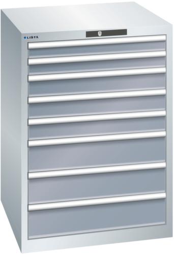 "longDescription": "LISTA Schubladenschrank, Lista Einheit: 36x36E, BxTxH: 717x725x1000mm, Schubladen-Nutzfläche BxT: 612x612mm, Anzahl Schubladen: 8, Anzahl Fronthöhen (Tragkraft): 2x 75mm (75kg), 3x100mm (75kg), 3x150mm (75kg), Schliessart: Code Lock, elektronisches Zahlenschloss mit 10 Ziffern für 4- bis 6-stellige Codes, bis 100 Codes, Farbe Gehäuse: Lichtgrau RAL 7035, Farbe Schubladen: Grau metallic NCS S 6502-B. Höchste Stabilität: Gehäuse bis 4t belastbar, Schubladen mit 75 oder 200 kg Tragkraft. Maximale Ausnutzung dank Vollauszug und optimaler Mantelhöhe der Schubladen. Exzellente Schutzeigenschaften gegen Schmutz, Flüssigkeiten und mechanische Beanspruchung durch geschlossenes Gehäuse mit schlag- und abriebfester Oberfläche. Überzeugende Sicherheit: Aushebesicherung gegen Herausfallen der Schubladen und Einzelschubladensperre als Kippschutz. Korrosionsschutz durch Elektrophorese-Tauchlackierung und umweltfreundlichen Pulverlack. Optimale Ordnung und Organisation dank speziellem LISTA-Einteilungsmaterial für jeden Zweck und gelochter, geschlitzter Schubladen. Professionelle Beschriftung mit Beschriftungssoftware LISTA Script und hochklappbarer Griffleiste zum Einlegen der Etiketten. Perfekte Laufruhe durch traversenlos geführten Differenzialauszug. Flexible Anpassungsmöglichkeiten durch vorperforierte Löcher für Tischplatten (Punchout), Rollen, Schubladen, Schliesssysteme für einfaches Um- und Nachrüsten<br>",