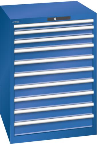 "longDescription": "LISTA Schubladenschrank, Lista Einheit: 36x36E, BxTxH: 717x725x1000mm, Schubladen-Nutzfläche BxT: 612x612mm, Anzahl Schubladen: 10, Anzahl Fronthöhen (Tragkraft): 1x 50mm (75kg), 2x 75mm (200kg), 7x100mm (200kg), Schliessart: Code Lock, elektronisches Zahlenschloss mit 10 Ziffern für 4- bis 6-stellige Codes, bis 100 Codes, Farbe Gehäuse: Signalblau RAL 5005, Farbe Schubladen: Signalblau RAL 5005. Höchste Stabilität: Gehäuse bis 4t belastbar, Schubladen mit 75 oder 200 kg Tragkraft. Maximale Ausnutzung dank Vollauszug und optimaler Mantelhöhe der Schubladen. Exzellente Schutzeigenschaften gegen Schmutz, Flüssigkeiten und mechanische Beanspruchung durch geschlossenes Gehäuse mit schlag- und abriebfester Oberfläche. Überzeugende Sicherheit: Aushebesicherung gegen Herausfallen der Schubladen und Einzelschubladensperre als Kippschutz. Korrosionsschutz durch Elektrophorese-Tauchlackierung und umweltfreundlichen Pulverlack. Optimale Ordnung und Organisation dank speziellem LISTA-Einteilungsmaterial für jeden Zweck und gelochter, geschlitzter Schubladen. Professionelle Beschriftung mit Beschriftungssoftware LISTA Script und hochklappbarer Griffleiste zum Einlegen der Etiketten. Perfekte Laufruhe durch traversenlos geführten Differenzialauszug. Flexible Anpassungsmöglichkeiten durch vorperforierte Löcher für Tischplatten (Punchout), Rollen, Schubladen, Schliesssysteme für einfaches Um- und Nachrüsten<br>",