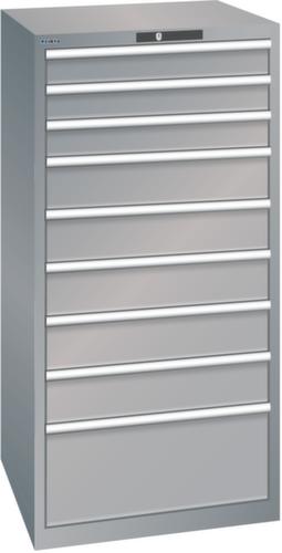 "longDescription": "LISTA Schubladenschrank, Lista Einheit: 36x36E, BxTxH: 717x725x1450mm, Schubladen-Nutzfläche BxT: 612x612mm, Anzahl Schubladen: 9, Anzahl Fronthöhen (Tragkraft): 3x100mm (75kg), 5x150mm (75kg), 1x300mm (75kg), Schliessart: Code Lock, elektronisches Zahlenschloss mit 10 Ziffern für 4- bis 6-stellige Codes, bis 100 Codes, Farbe Gehäuse: Taubengrau NCS S 4502-B, Farbe Schubladen: Taubengrau NCS S 4502-B. Höchste Stabilität: Gehäuse bis 4t belastbar, Schubladen mit 75 oder 200 kg Tragkraft. Maximale Ausnutzung dank Vollauszug und optimaler Mantelhöhe der Schubladen. Exzellente Schutzeigenschaften gegen Schmutz, Flüssigkeiten und mechanische Beanspruchung durch geschlossenes Gehäuse mit schlag- und abriebfester Oberfläche. Überzeugende Sicherheit: Aushebesicherung gegen Herausfallen der Schubladen und Einzelschubladensperre als Kippschutz. Korrosionsschutz durch Elektrophorese-Tauchlackierung und umweltfreundlichen Pulverlack. Optimale Ordnung und Organisation dank speziellem LISTA-Einteilungsmaterial für jeden Zweck und gelochter, geschlitzter Schubladen. Professionelle Beschriftung mit Beschriftungssoftware LISTA Script und hochklappbarer Griffleiste zum Einlegen der Etiketten. Perfekte Laufruhe durch traversenlos geführten Differenzialauszug. Flexible Anpassungsmöglichkeiten durch vorperforierte Löcher für Tischplatten (Punchout), Rollen, Schubladen, Schliesssysteme für einfaches Um- und Nachrüsten<br>",