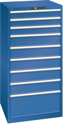 "longDescription": "LISTA Schubladenschrank, Lista Einheit: 36x36E, BxTxH: 717x725x1450mm, Schubladen-Nutzfläche BxT: 612x612mm, Anzahl Schubladen: 9, Anzahl Fronthöhen (Tragkraft): 3x100mm (75kg), 5x150mm (75kg), 1x300mm (75kg), Schliessart: Code Lock, elektronisches Zahlenschloss mit 10 Ziffern für 4- bis 6-stellige Codes, bis 100 Codes, Farbe Gehäuse: Enzianblau RAL 5010, Farbe Schubladen: Enzianblau RAL 5010. Höchste Stabilität: Gehäuse bis 4t belastbar, Schubladen mit 75 oder 200 kg Tragkraft. Maximale Ausnutzung dank Vollauszug und optimaler Mantelhöhe der Schubladen. Exzellente Schutzeigenschaften gegen Schmutz, Flüssigkeiten und mechanische Beanspruchung durch geschlossenes Gehäuse mit schlag- und abriebfester Oberfläche. Überzeugende Sicherheit: Aushebesicherung gegen Herausfallen der Schubladen und Einzelschubladensperre als Kippschutz. Korrosionsschutz durch Elektrophorese-Tauchlackierung und umweltfreundlichen Pulverlack. Optimale Ordnung und Organisation dank speziellem LISTA-Einteilungsmaterial für jeden Zweck und gelochter, geschlitzter Schubladen. Professionelle Beschriftung mit Beschriftungssoftware LISTA Script und hochklappbarer Griffleiste zum Einlegen der Etiketten. Perfekte Laufruhe durch traversenlos geführten Differenzialauszug. Flexible Anpassungsmöglichkeiten durch vorperforierte Löcher für Tischplatten (Punchout), Rollen, Schubladen, Schliesssysteme für einfaches Um- und Nachrüsten<br>",