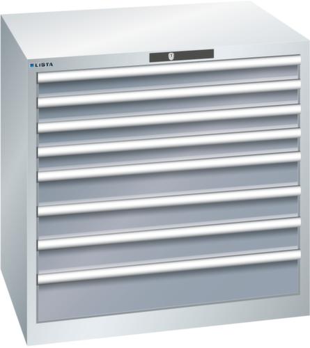"longDescription": "LISTA Schubladenschrank, Lista Einheit: 45x36E, BxTxH: 870x725x850mm, Schubladen-Nutzfläche BxT: 765x612mm, Anzahl Schubladen: 8, Anzahl Fronthöhen (Tragkraft): 4x75mm (75kg), 3x100mm (75kg), 1x150mm (75kg), Schliessart: Code Lock, elektronisches Zahlenschloss mit 10 Ziffern für 4- bis 6-stellige Codes, bis 100 Codes, Farbe Gehäuse: Lichtgrau RAL 7035, Farbe Schubladen: Grau metallic NCS S 6502-B. Höchste Stabilität: Gehäuse bis 4t belastbar, Schubladen mit 75 oder 200 kg Tragkraft. Maximale Ausnutzung dank Vollauszug und optimaler Mantelhöhe der Schubladen. Exzellente Schutzeigenschaften gegen Schmutz, Flüssigkeiten und mechanische Beanspruchung durch geschlossenes Gehäuse mit schlag- und abriebfester Oberfläche. Überzeugende Sicherheit: Aushebesicherung gegen Herausfallen der Schubladen und Einzelschubladensperre als Kippschutz. Korrosionsschutz durch Elektrophorese-Tauchlackierung und umweltfreundlichen Pulverlack. Optimale Ordnung und Organisation dank speziellem LISTA-Einteilungsmaterial für jeden Zweck und gelochter, geschlitzter Schubladen. Professionelle Beschriftung mit Beschriftungssoftware LISTA Script und hochklappbarer Griffleiste zum Einlegen der Etiketten. Perfekte Laufruhe durch traversenlos geführten Differenzialauszug. Flexible Anpassungsmöglichkeiten durch vorperforierte Löcher für Tischplatten (Punchout), Rollen, Schubladen, Schliesssysteme für einfaches Um- und Nachrüsten<br>",