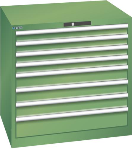 "longDescription": "LISTA Schubladenschrank, Lista Einheit: 45x36E, BxTxH: 870x725x850mm, Schubladen-Nutzfläche BxT: 765x612mm, Anzahl Schubladen: 8, Anzahl Fronthöhen (Tragkraft): 4x75mm (200kg), 3x100mm (200kg), 1x150mm (200kg), Schliessart: Code Lock, elektronisches Zahlenschloss mit 10 Ziffern für 4- bis 6-stellige Codes, bis 100 Codes, Farbe Gehäuse: Resedagrün RAL 6011, Farbe Schubladen: Resedagrün RAL 6011. Höchste Stabilität: Gehäuse bis 4t belastbar, Schubladen mit 75 oder 200 kg Tragkraft. Maximale Ausnutzung dank Vollauszug und optimaler Mantelhöhe der Schubladen. Exzellente Schutzeigenschaften gegen Schmutz, Flüssigkeiten und mechanische Beanspruchung durch geschlossenes Gehäuse mit schlag- und abriebfester Oberfläche. Überzeugende Sicherheit: Aushebesicherung gegen Herausfallen der Schubladen und Einzelschubladensperre als Kippschutz. Korrosionsschutz durch Elektrophorese-Tauchlackierung und umweltfreundlichen Pulverlack. Optimale Ordnung und Organisation dank speziellem LISTA-Einteilungsmaterial für jeden Zweck und gelochter, geschlitzter Schubladen. Professionelle Beschriftung mit Beschriftungssoftware LISTA Script und hochklappbarer Griffleiste zum Einlegen der Etiketten. Perfekte Laufruhe durch traversenlos geführten Differenzialauszug. Flexible Anpassungsmöglichkeiten durch vorperforierte Löcher für Tischplatten (Punchout), Rollen, Schubladen, Schliesssysteme für einfaches Um- und Nachrüsten<br>",
