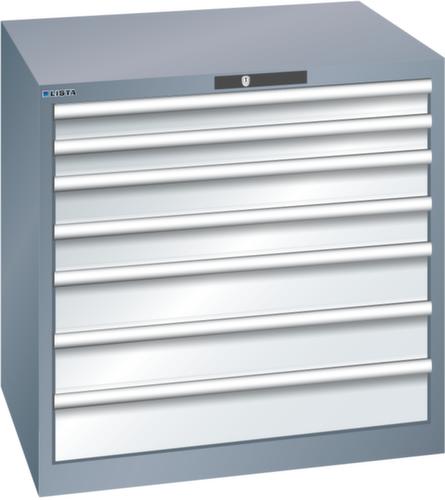 "longDescription": "LISTA Schubladenschrank, Lista Einheit: 45x36E, BxTxH: 870x725x850mm, Schubladen-Nutzfläche BxT: 765x612mm, Anzahl Schubladen: 7, Anzahl Fronthöhen (Tragkraft): 2x75mm (200kg), 2x100mm (200kg), 2x125mm (200kg), 1x150mm (200kg), Schliessart: Code Lock, elektronisches Zahlenschloss mit 10 Ziffern für 4- bis 6-stellige Codes, bis 100 Codes, Farbe Gehäuse: Grau metallic NCS S 6502-B, Farbe Schubladen: Lichtgrau RAL 7035. Höchste Stabilität: Gehäuse bis 4t belastbar, Schubladen mit 75 oder 200 kg Tragkraft. Maximale Ausnutzung dank Vollauszug und optimaler Mantelhöhe der Schubladen. Exzellente Schutzeigenschaften gegen Schmutz, Flüssigkeiten und mechanische Beanspruchung durch geschlossenes Gehäuse mit schlag- und abriebfester Oberfläche. Überzeugende Sicherheit: Aushebesicherung gegen Herausfallen der Schubladen und Einzelschubladensperre als Kippschutz. Korrosionsschutz durch Elektrophorese-Tauchlackierung und umweltfreundlichen Pulverlack. Optimale Ordnung und Organisation dank speziellem LISTA-Einteilungsmaterial für jeden Zweck und gelochter, geschlitzter Schubladen. Professionelle Beschriftung mit Beschriftungssoftware LISTA Script und hochklappbarer Griffleiste zum Einlegen der Etiketten. Perfekte Laufruhe durch traversenlos geführten Differenzialauszug. Flexible Anpassungsmöglichkeiten durch vorperforierte Löcher für Tischplatten (Punchout), Rollen, Schubladen, Schliesssysteme für einfaches Um- und Nachrüsten<br>",