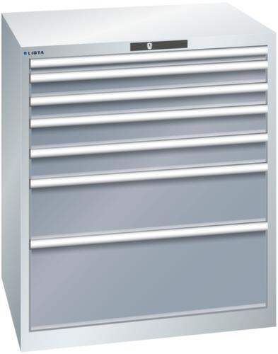 "longDescription": "LISTA Schubladenschrank, Lista Einheit: 45x36E, BxTxH: 870x725x1000mm, Schubladen-Nutzfläche BxT: 765x612mm, Anzahl Schubladen: 7, Anzahl Fronthöhen (Tragkraft): 1x50mm (75kg), 2x75mm (75kg), 2x100mm (75kg), 1x200mm (75kg), 1x300mm (200kg), Schliessart: Code Lock, elektronisches Zahlenschloss mit 10 Ziffern für 4- bis 6-stellige Codes, bis 100 Codes, Farbe Gehäuse: Lichtgrau RAL 7035, Farbe Schubladen: Grau metallic NCS S 6502-B. Höchste Stabilität: Gehäuse bis 4t belastbar, Schubladen mit 75 oder 200 kg Tragkraft. Maximale Ausnutzung dank Vollauszug und optimaler Mantelhöhe der Schubladen. Exzellente Schutzeigenschaften gegen Schmutz, Flüssigkeiten und mechanische Beanspruchung durch geschlossenes Gehäuse mit schlag- und abriebfester Oberfläche. Überzeugende Sicherheit: Aushebesicherung gegen Herausfallen der Schubladen und Einzelschubladensperre als Kippschutz. Korrosionsschutz durch Elektrophorese-Tauchlackierung und umweltfreundlichen Pulverlack. Optimale Ordnung und Organisation dank speziellem LISTA-Einteilungsmaterial für jeden Zweck und gelochter, geschlitzter Schubladen. Professionelle Beschriftung mit Beschriftungssoftware LISTA Script und hochklappbarer Griffleiste zum Einlegen der Etiketten. Perfekte Laufruhe durch traversenlos geführten Differenzialauszug. Flexible Anpassungsmöglichkeiten durch vorperforierte Löcher für Tischplatten (Punchout), Rollen, Schubladen, Schliesssysteme für einfaches Um- und Nachrüsten<br>",