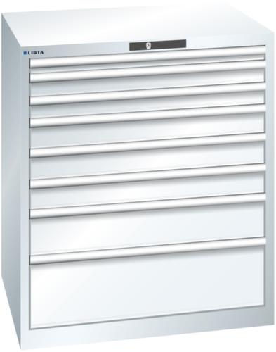 "longDescription": "LISTA Schubladenschrank, Lista Einheit: 45x36E, BxTxH: 870x725x1000mm, Schubladen-Nutzfläche BxT: 765x612mm, Anzahl Schubladen: 8, Anzahl Fronthöhen (Tragkraft): 1x50mm (75kg), 2x75mm (75kg), 3x100mm (75kg), 1x150mm (75kg), 1x250mm (200kg), Schliessart: Code Lock, elektronisches Zahlenschloss mit 10 Ziffern für 4- bis 6-stellige Codes, bis 100 Codes, Farbe Gehäuse: Reinweiss RAL 9010, Farbe Schubladen: Reinweiss RAL 9010. Höchste Stabilität: Gehäuse bis 4t belastbar, Schubladen mit 75 oder 200 kg Tragkraft. Maximale Ausnutzung dank Vollauszug und optimaler Mantelhöhe der Schubladen. Exzellente Schutzeigenschaften gegen Schmutz, Flüssigkeiten und mechanische Beanspruchung durch geschlossenes Gehäuse mit schlag- und abriebfester Oberfläche. Überzeugende Sicherheit: Aushebesicherung gegen Herausfallen der Schubladen und Einzelschubladensperre als Kippschutz. Korrosionsschutz durch Elektrophorese-Tauchlackierung und umweltfreundlichen Pulverlack. Optimale Ordnung und Organisation dank speziellem LISTA-Einteilungsmaterial für jeden Zweck und gelochter, geschlitzter Schubladen. Professionelle Beschriftung mit Beschriftungssoftware LISTA Script und hochklappbarer Griffleiste zum Einlegen der Etiketten. Perfekte Laufruhe durch traversenlos geführten Differenzialauszug. Flexible Anpassungsmöglichkeiten durch vorperforierte Löcher für Tischplatten (Punchout), Rollen, Schubladen, Schliesssysteme für einfaches Um- und Nachrüsten<br>",