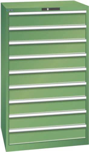 "longDescription": "LISTA Schubladenschrank, Lista Einheit: 45x36E, BxTxH: 870x725x1450mm, Schubladen-Nutzfläche BxT: 765x612mm, Anzahl Schubladen: 9, Anzahl Fronthöhen (Tragkraft): 9x150mm (75kg), Schliessart: Key Lock, Standard-Schliessung mit Wechselyzlinder inkl. 2 Schlüsseln mit Schlüsselnummer, Farbe Gehäuse: Resedagrün RAL 6011, Farbe Schubladen: Resedagrün RAL 6011. Höchste Stabilität: Gehäuse bis 4t belastbar, Schubladen mit 75 oder 200 kg Tragkraft. Maximale Ausnutzung dank Vollauszug und optimaler Mantelhöhe der Schubladen. Exzellente Schutzeigenschaften gegen Schmutz, Flüssigkeiten und mechanische Beanspruchung durch geschlossenes Gehäuse mit schlag- und abriebfester Oberfläche. Überzeugende Sicherheit: Aushebesicherung gegen Herausfallen der Schubladen und Einzelschubladensperre als Kippschutz. Korrosionsschutz durch Elektrophorese-Tauchlackierung und umweltfreundlichen Pulverlack. Optimale Ordnung und Organisation dank speziellem LISTA-Einteilungsmaterial für jeden Zweck und gelochter, geschlitzter Schubladen. Professionelle Beschriftung mit Beschriftungssoftware LISTA Script und hochklappbarer Griffleiste zum Einlegen der Etiketten. Perfekte Laufruhe durch traversenlos geführten Differenzialauszug. Flexible Anpassungsmöglichkeiten durch vorperforierte Löcher für Tischplatten (Punchout), Rollen, Schubladen, Schliesssysteme für einfaches Um- und Nachrüsten<br>",