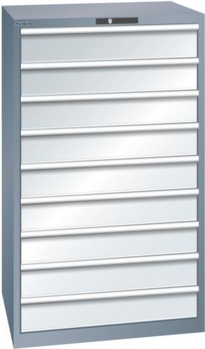 "longDescription": "LISTA Schubladenschrank, Lista Einheit: 45x36E, BxTxH: 870x725x1450mm, Schubladen-Nutzfläche BxT: 765x612mm, Anzahl Schubladen: 9, Anzahl Fronthöhen (Tragkraft): 9x150mm (200kg), Schliessart: Key Lock, Standard-Schliessung mit Wechselyzlinder inkl. 2 Schlüsseln mit Schlüsselnummer, Farbe Gehäuse: Grau metallic NCS S 6502-B, Farbe Schubladen: Lichtgrau RAL 7035. Höchste Stabilität: Gehäuse bis 4t belastbar, Schubladen mit 75 oder 200 kg Tragkraft. Maximale Ausnutzung dank Vollauszug und optimaler Mantelhöhe der Schubladen. Exzellente Schutzeigenschaften gegen Schmutz, Flüssigkeiten und mechanische Beanspruchung durch geschlossenes Gehäuse mit schlag- und abriebfester Oberfläche. Überzeugende Sicherheit: Aushebesicherung gegen Herausfallen der Schubladen und Einzelschubladensperre als Kippschutz. Korrosionsschutz durch Elektrophorese-Tauchlackierung und umweltfreundlichen Pulverlack. Optimale Ordnung und Organisation dank speziellem LISTA-Einteilungsmaterial für jeden Zweck und gelochter, geschlitzter Schubladen. Professionelle Beschriftung mit Beschriftungssoftware LISTA Script und hochklappbarer Griffleiste zum Einlegen der Etiketten. Perfekte Laufruhe durch traversenlos geführten Differenzialauszug. Flexible Anpassungsmöglichkeiten durch vorperforierte Löcher für Tischplatten (Punchout), Rollen, Schubladen, Schliesssysteme für einfaches Um- und Nachrüsten<br>",