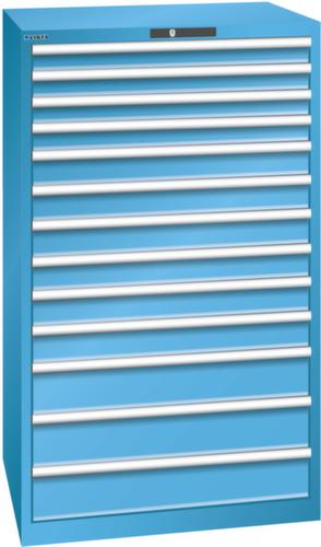 "longDescription": "LISTA Schubladenschrank, Lista Einheit: 45x36E, BxTxH: 870x725x1450mm, Schubladen-Nutzfläche BxT: 765x612mm, Anzahl Schubladen: 13, Anzahl Fronthöhen (Tragkraft): 4x75mm (75kg), 6x100mm (75kg), 3x150mm (75kg), Schliessart: Code Lock, elektronisches Zahlenschloss mit 10 Ziffern für 4- bis 6-stellige Codes, bis 100 Codes, Farbe Gehäuse: Lichtblau RAL 5012, Farbe Schubladen: Lichtblau RAL 5012. Höchste Stabilität: Gehäuse bis 4t belastbar, Schubladen mit 75 oder 200 kg Tragkraft. Maximale Ausnutzung dank Vollauszug und optimaler Mantelhöhe der Schubladen. Exzellente Schutzeigenschaften gegen Schmutz, Flüssigkeiten und mechanische Beanspruchung durch geschlossenes Gehäuse mit schlag- und abriebfester Oberfläche. Überzeugende Sicherheit: Aushebesicherung gegen Herausfallen der Schubladen und Einzelschubladensperre als Kippschutz. Korrosionsschutz durch Elektrophorese-Tauchlackierung und umweltfreundlichen Pulverlack. Optimale Ordnung und Organisation dank speziellem LISTA-Einteilungsmaterial für jeden Zweck und gelochter, geschlitzter Schubladen. Professionelle Beschriftung mit Beschriftungssoftware LISTA Script und hochklappbarer Griffleiste zum Einlegen der Etiketten. Perfekte Laufruhe durch traversenlos geführten Differenzialauszug. Flexible Anpassungsmöglichkeiten durch vorperforierte Löcher für Tischplatten (Punchout), Rollen, Schubladen, Schliesssysteme für einfaches Um- und Nachrüsten<br>",