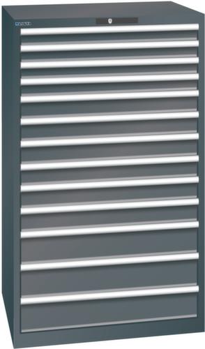 "longDescription": "LISTA Schubladenschrank, Lista Einheit: 45x36E, BxTxH: 870x725x1450mm, Schubladen-Nutzfläche BxT: 765x612mm, Anzahl Schubladen: 13, Anzahl Fronthöhen (Tragkraft): 4x75mm (200kg), 6x100mm (200kg), 3x150mm (200kg), Schliessart: Key Lock, Standard-Schliessung mit Wechselyzlinder inkl. 2 Schlüsseln mit Schlüsselnummer, Farbe Gehäuse: Schwarz NCS S 9000-N, Farbe Schubladen: Schwarz NCS S 9000-N. Höchste Stabilität: Gehäuse bis 4t belastbar, Schubladen mit 75 oder 200 kg Tragkraft. Maximale Ausnutzung dank Vollauszug und optimaler Mantelhöhe der Schubladen. Exzellente Schutzeigenschaften gegen Schmutz, Flüssigkeiten und mechanische Beanspruchung durch geschlossenes Gehäuse mit schlag- und abriebfester Oberfläche. Überzeugende Sicherheit: Aushebesicherung gegen Herausfallen der Schubladen und Einzelschubladensperre als Kippschutz. Korrosionsschutz durch Elektrophorese-Tauchlackierung und umweltfreundlichen Pulverlack. Optimale Ordnung und Organisation dank speziellem LISTA-Einteilungsmaterial für jeden Zweck und gelochter, geschlitzter Schubladen. Professionelle Beschriftung mit Beschriftungssoftware LISTA Script und hochklappbarer Griffleiste zum Einlegen der Etiketten. Perfekte Laufruhe durch traversenlos geführten Differenzialauszug. Flexible Anpassungsmöglichkeiten durch vorperforierte Löcher für Tischplatten (Punchout), Rollen, Schubladen, Schliesssysteme für einfaches Um- und Nachrüsten<br>",
