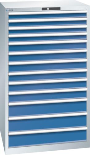 "longDescription": "LISTA Schubladenschrank, Lista Einheit: 45x36E, BxTxH: 870x725x1450mm, Schubladen-Nutzfläche BxT: 765x612mm, Anzahl Schubladen: 13, Anzahl Fronthöhen (Tragkraft): 4x75mm (200kg), 6x100mm (200kg), 3x150mm (200kg), Schliessart: Key Lock, Standard-Schliessung mit Wechselyzlinder inkl. 2 Schlüsseln mit Schlüsselnummer, Farbe Gehäuse: Lichtgrau RAL 7035, Farbe Schubladen: Signalblau RAL 5005. Höchste Stabilität: Gehäuse bis 4t belastbar, Schubladen mit 75 oder 200 kg Tragkraft. Maximale Ausnutzung dank Vollauszug und optimaler Mantelhöhe der Schubladen. Exzellente Schutzeigenschaften gegen Schmutz, Flüssigkeiten und mechanische Beanspruchung durch geschlossenes Gehäuse mit schlag- und abriebfester Oberfläche. Überzeugende Sicherheit: Aushebesicherung gegen Herausfallen der Schubladen und Einzelschubladensperre als Kippschutz. Korrosionsschutz durch Elektrophorese-Tauchlackierung und umweltfreundlichen Pulverlack. Optimale Ordnung und Organisation dank speziellem LISTA-Einteilungsmaterial für jeden Zweck und gelochter, geschlitzter Schubladen. Professionelle Beschriftung mit Beschriftungssoftware LISTA Script und hochklappbarer Griffleiste zum Einlegen der Etiketten. Perfekte Laufruhe durch traversenlos geführten Differenzialauszug. Flexible Anpassungsmöglichkeiten durch vorperforierte Löcher für Tischplatten (Punchout), Rollen, Schubladen, Schliesssysteme für einfaches Um- und Nachrüsten<br>",